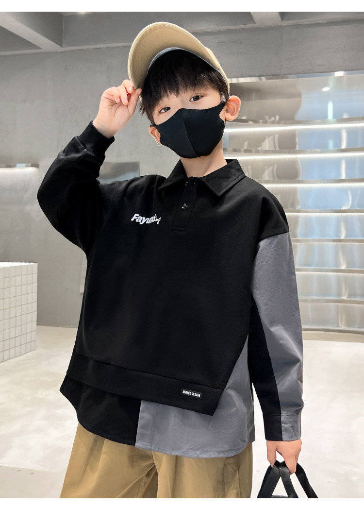 Спортивный детский весенний лонгслив для мальчиков, осенний, воротник поло, детская одежда