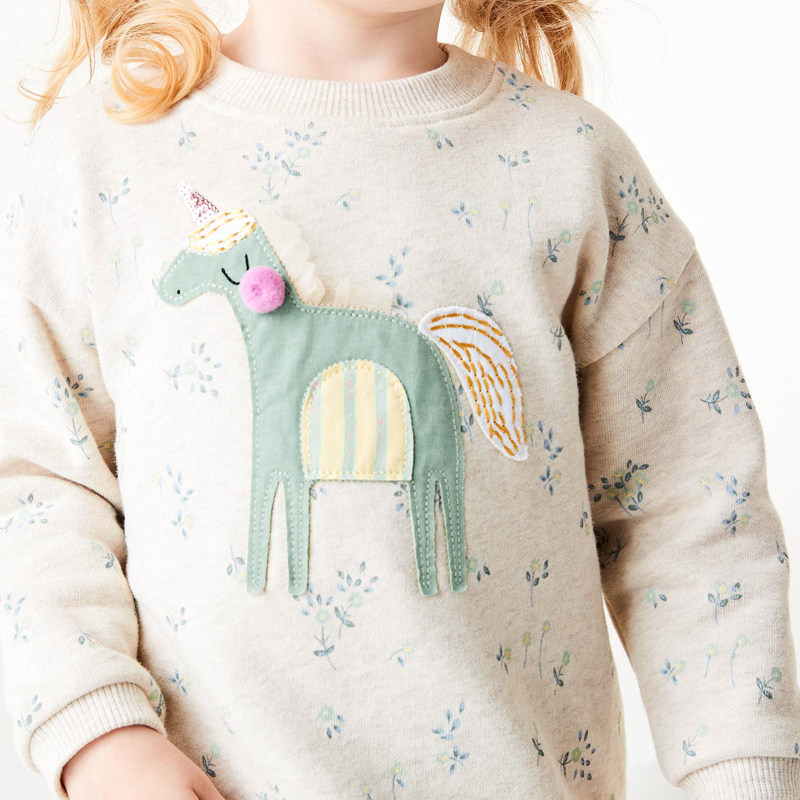 Осенняя толстовка, хлопковый флисовый базовый лонгслив для девочек, цветочный принт