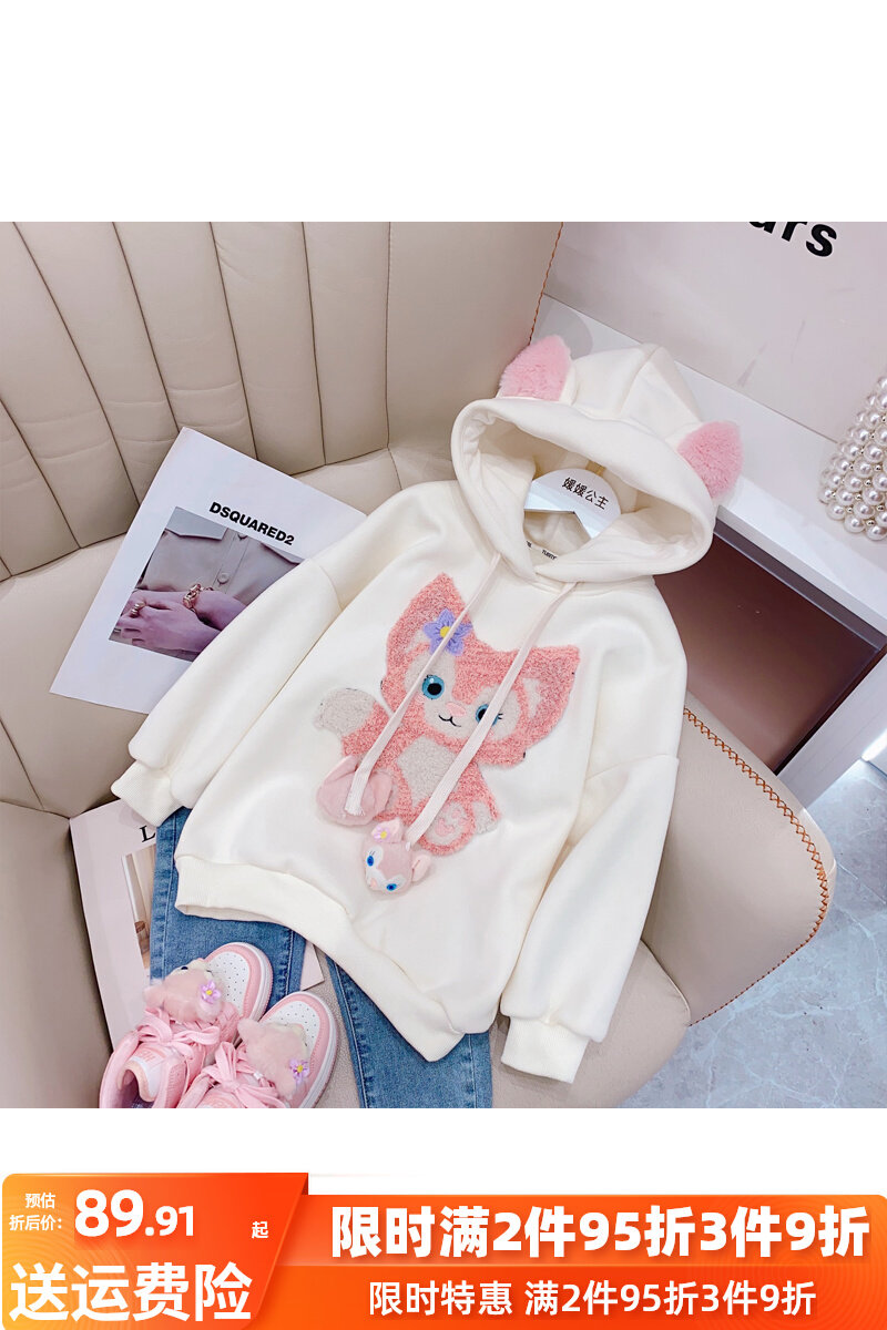 Утепленная толстовка, платье, зимняя толстовка с капюшоном с капюшоном, термобелье, 2023, в корейском стиле, детская одежда