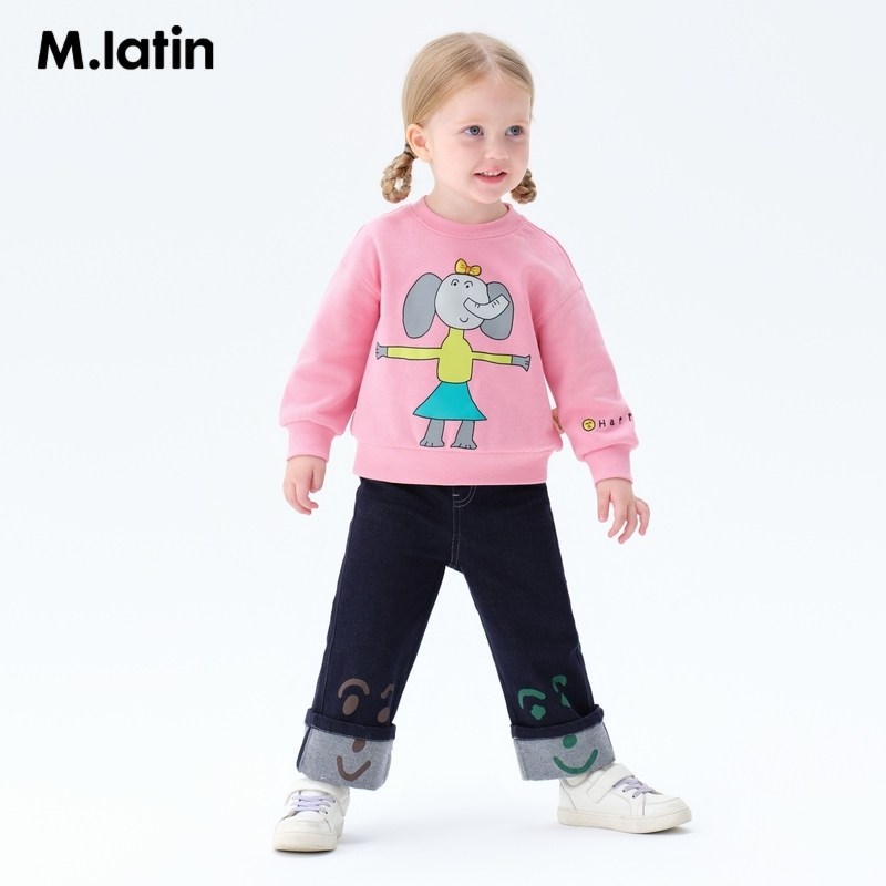 Детская осенняя толстовка, милый розовый свитшот с круглым воротником, детская одежда