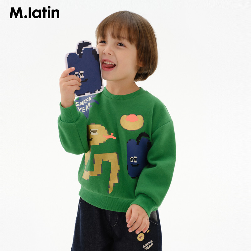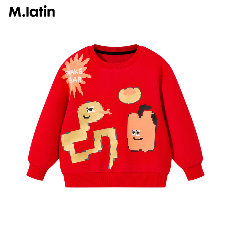 Детская одежда Maladin, толстовка 2025, весна, Новый год, Новый год Змеи, красная толстовка с круглым вырезом и новогодним поздравлением для детей