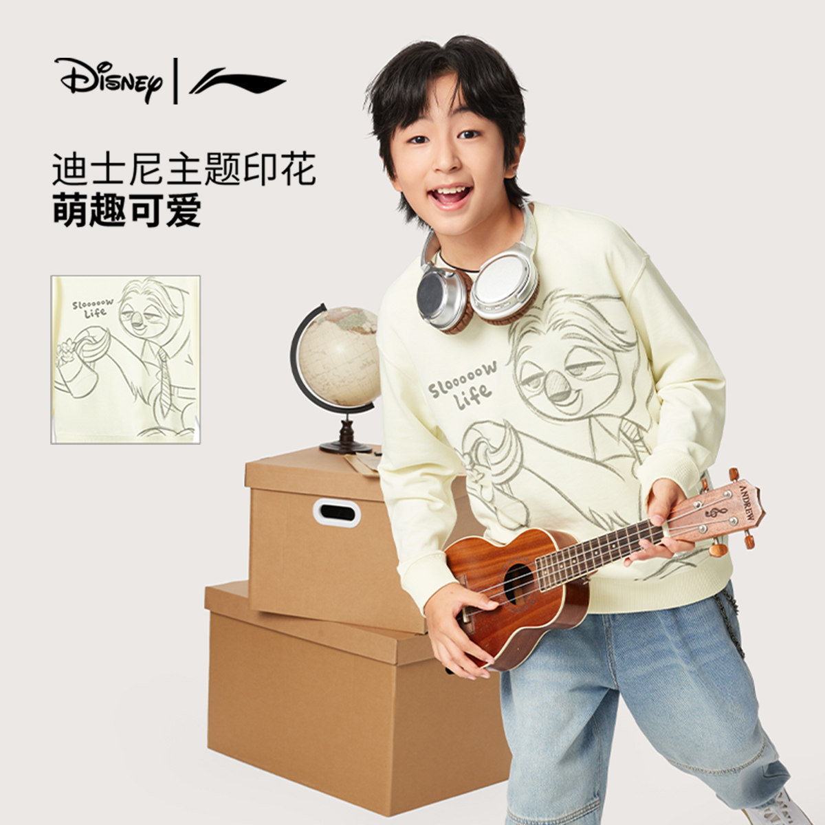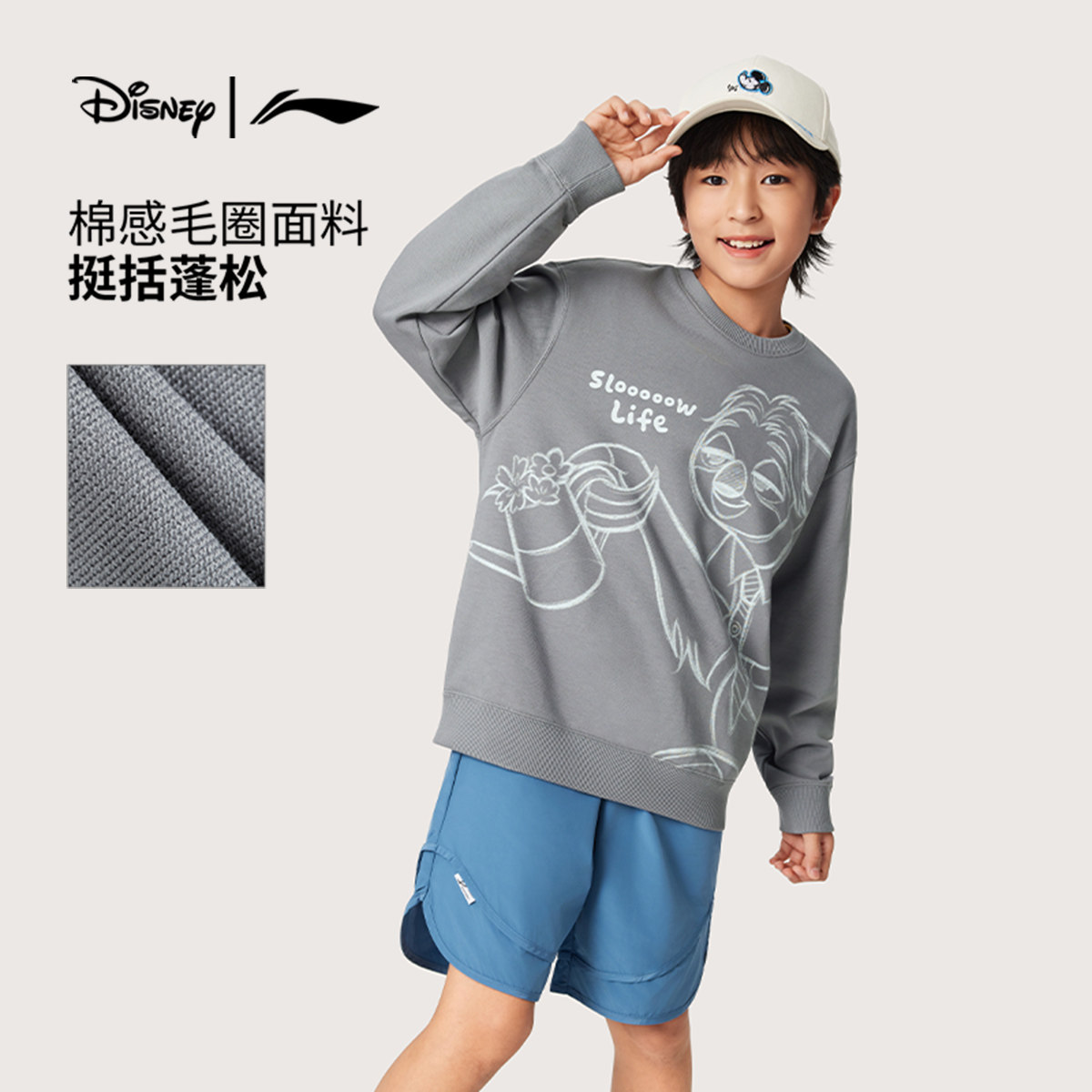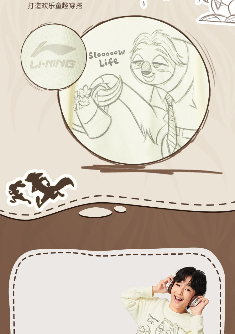 Li Ning, Дисней, весенняя толстовка подходит для мужчин и женщин для мальчиков, подходит для подростков, детская одежда