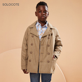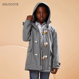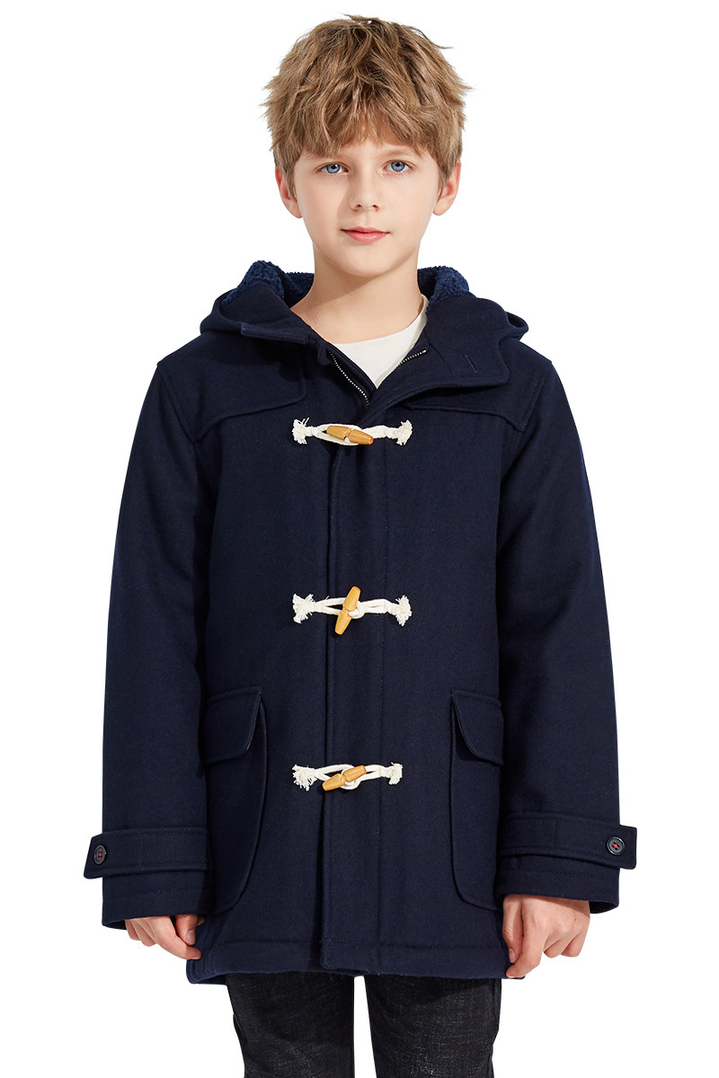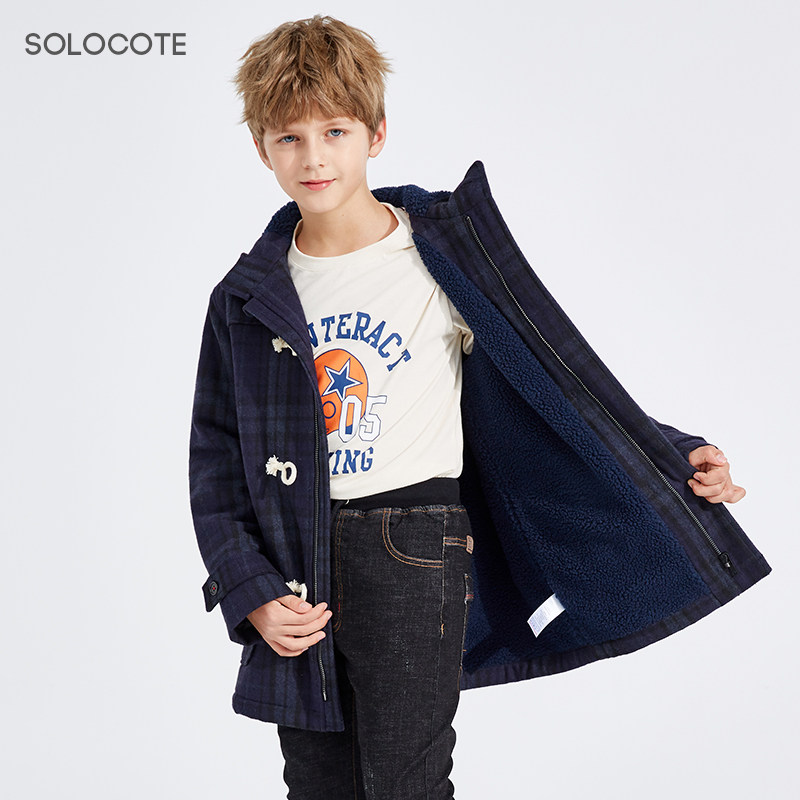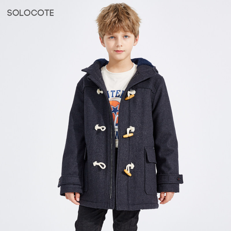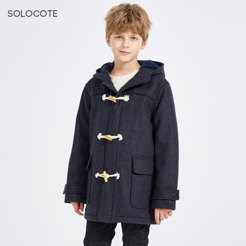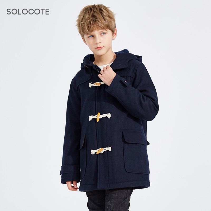 Демисезонное утепленное шерстяное пальто для мальчиков, детский пуховик с капюшоном, средней длины, увеличенная толщина