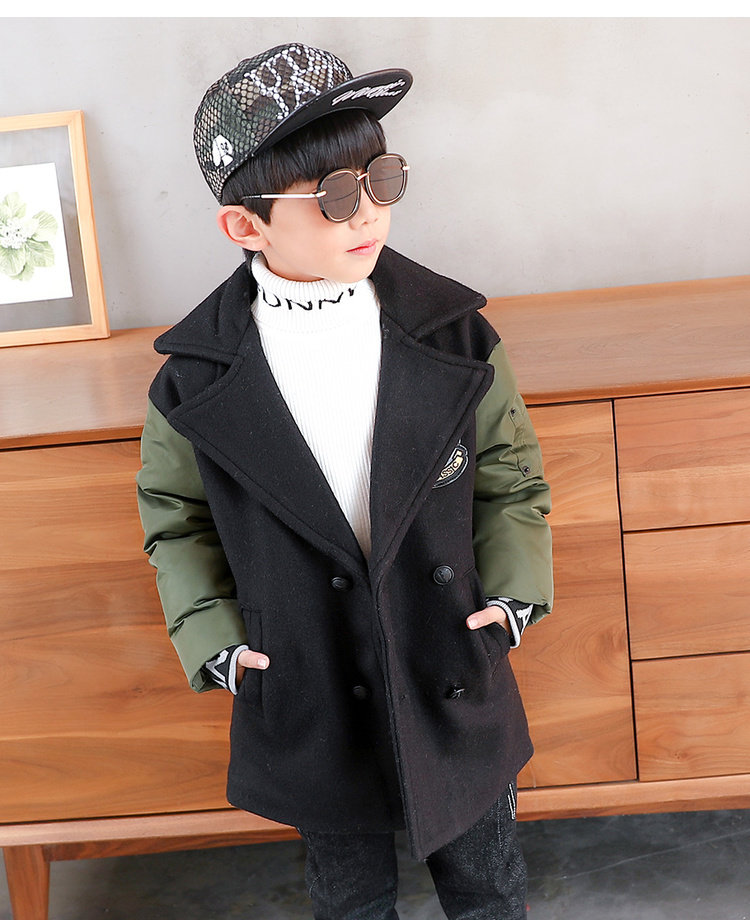Детский пуховик для мальчиков, демисезонное шерстяное пальто, увеличенная толщина