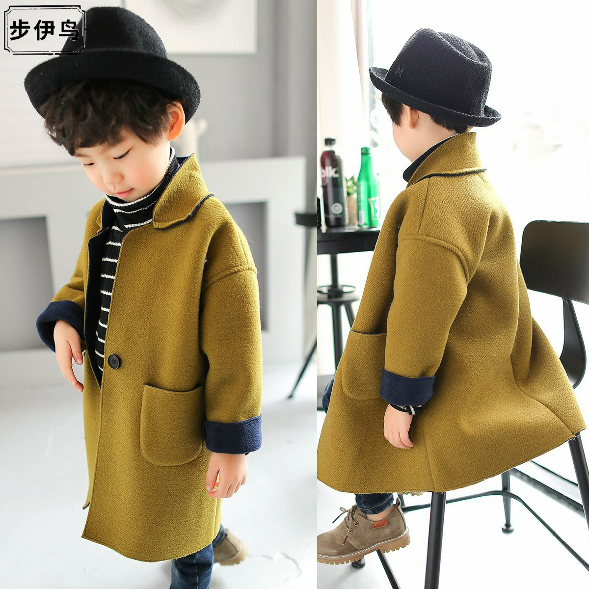 Детское шерстяное пальто для мальчиков, демисезонный пуховик, детская одежда