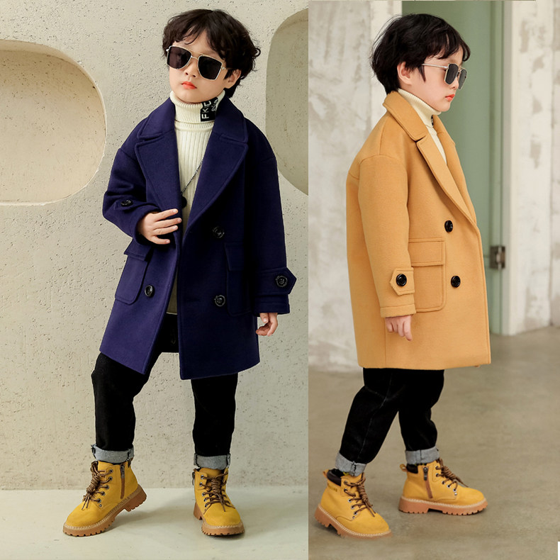 Демисезонное шерстяное пальто для мальчиков, куртка, детский плащ, коллекция 2023, в корейском стиле, в западном стиле