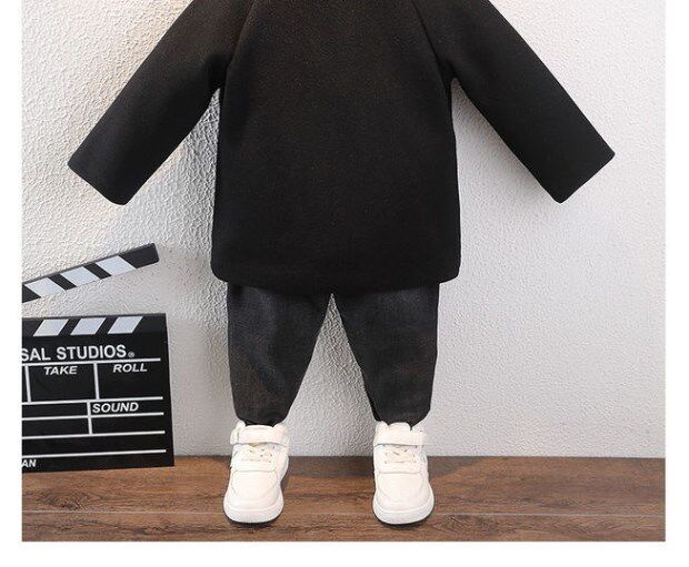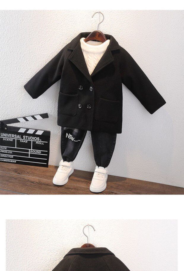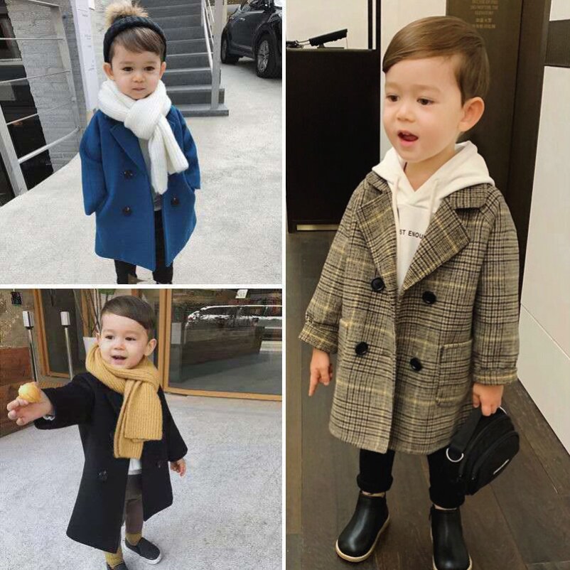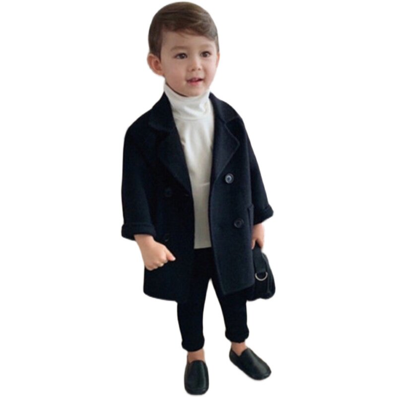 Демисезонное осеннее длинное шерстяное пальто для мальчиков, детская длинная куртка, коллекция 2021, длина макси