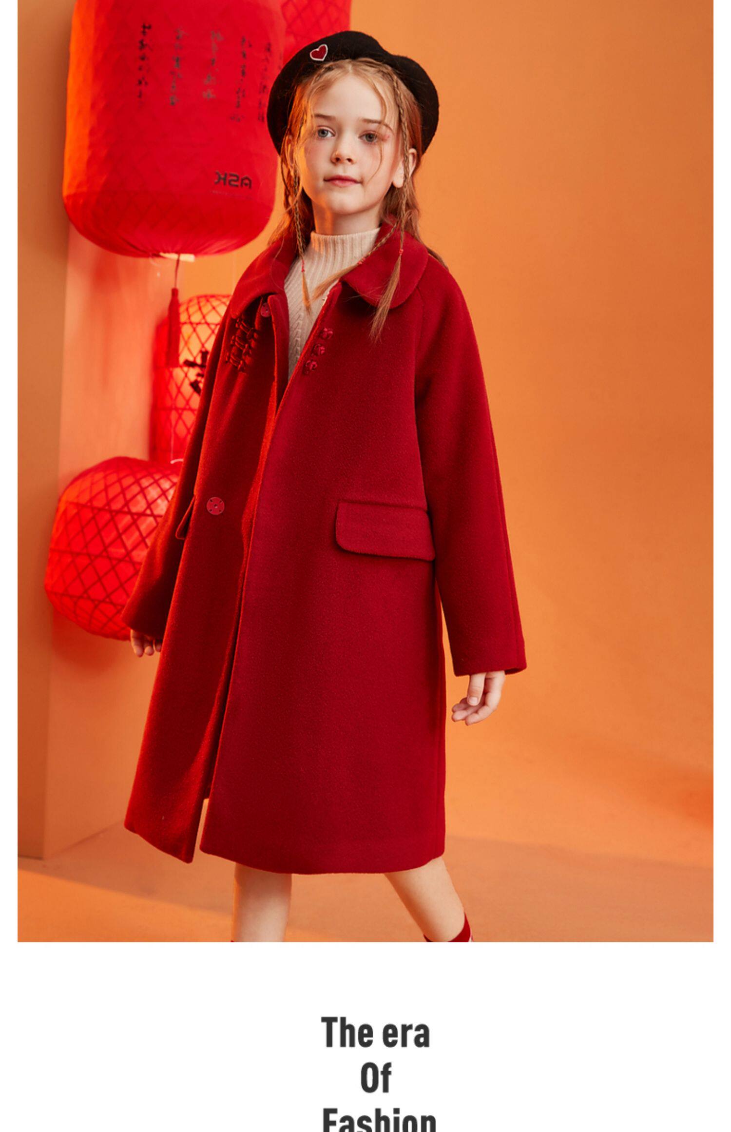 Детское зимнее шерстяное пальто, красная цветная куртка, коллекция 2023, в западном стиле, увеличенная толщина, подходит для подростков