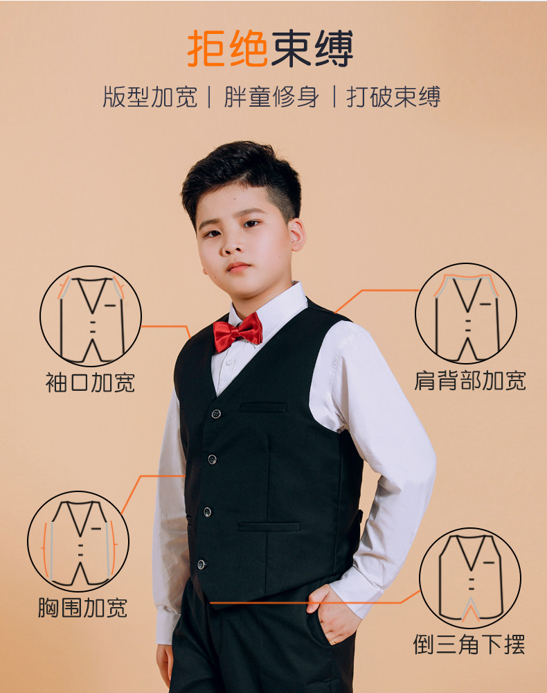 Костюм для мальчиков, детский жилет, черное платье, большой размер, подходит для подростков