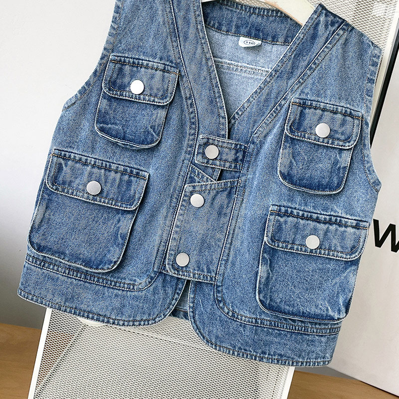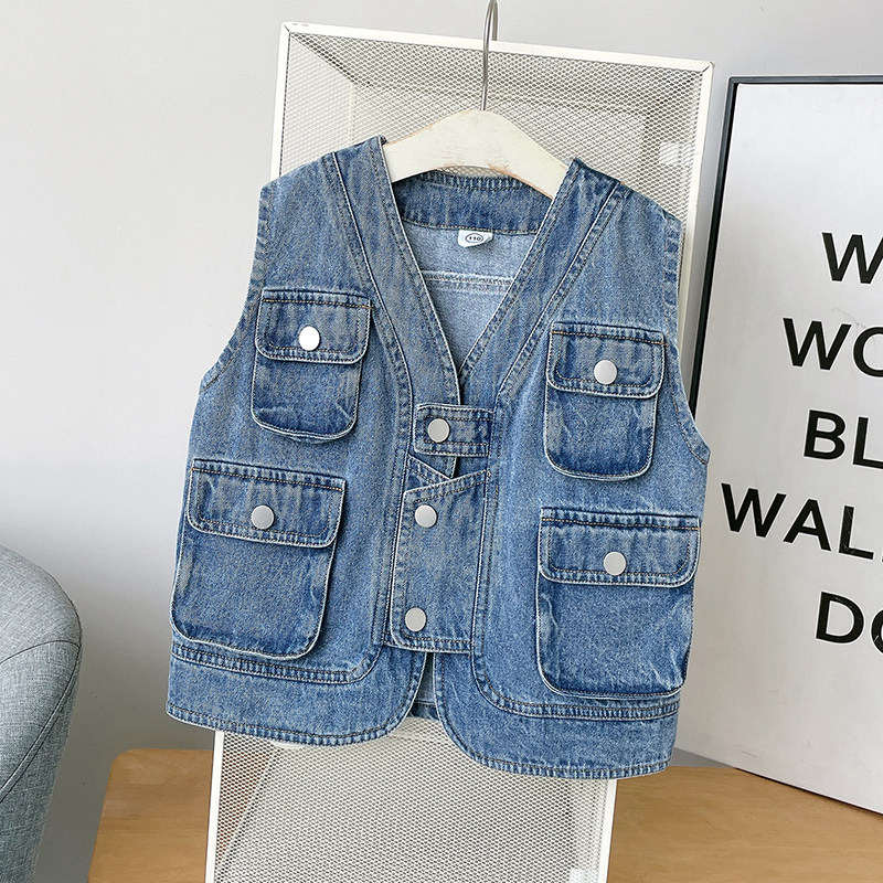 Джинсовый японский детский весенний жилет для мальчиков, куртка, детская одежда