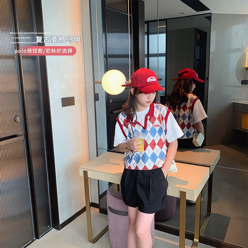 Короткий осенний жилет с ромбовидным узором, детский бюстгальтер-топ, подходит для подростков, в западном стиле