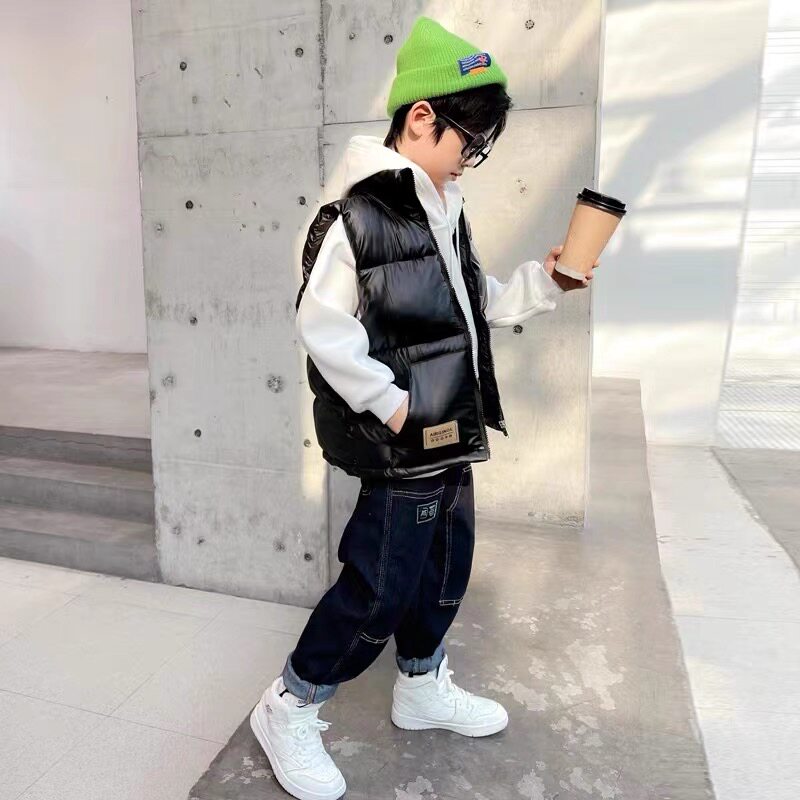 Детский осенний глянцевый жилет с пухом для мальчиков, увеличенная толщина, подходит для подростков