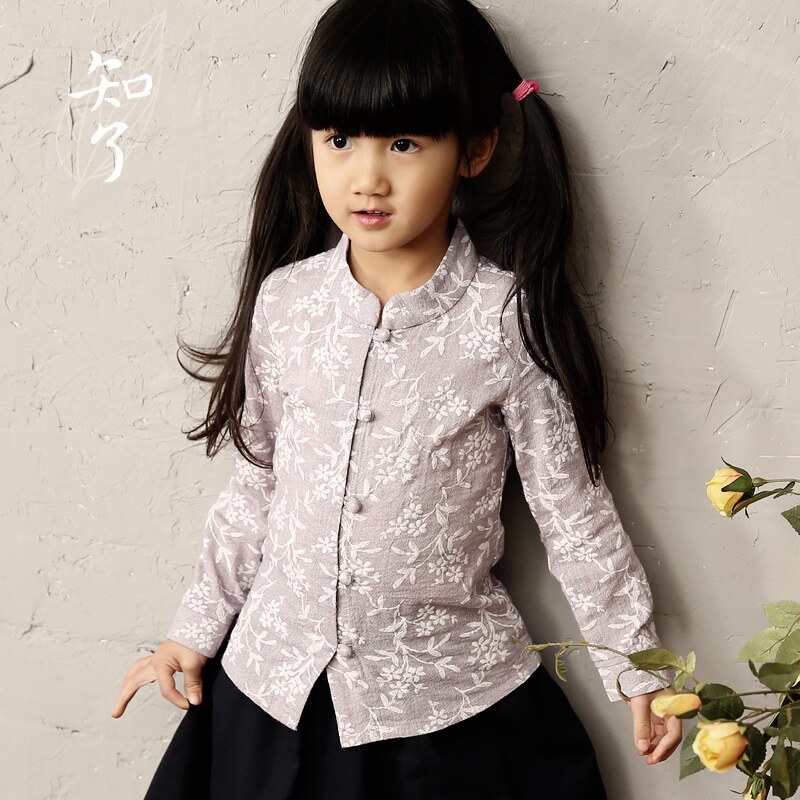 知了 Осенняя хлопковая рубашка, детская одежда, подходит для подростков, китайский стиль