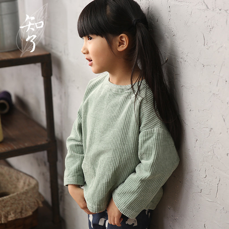知了 Вельветовая детская рубашка, лонгслив с круглым воротником, детская одежда, подходит для подростков
