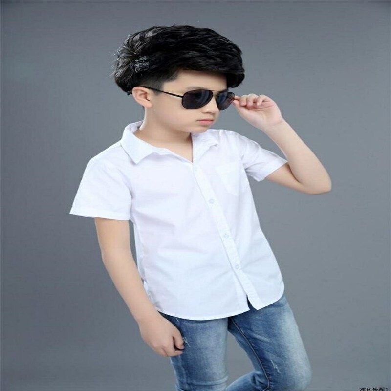 Летняя детская рубашка для школьников, белая хлопковая форма для мальчиков, благородный крой