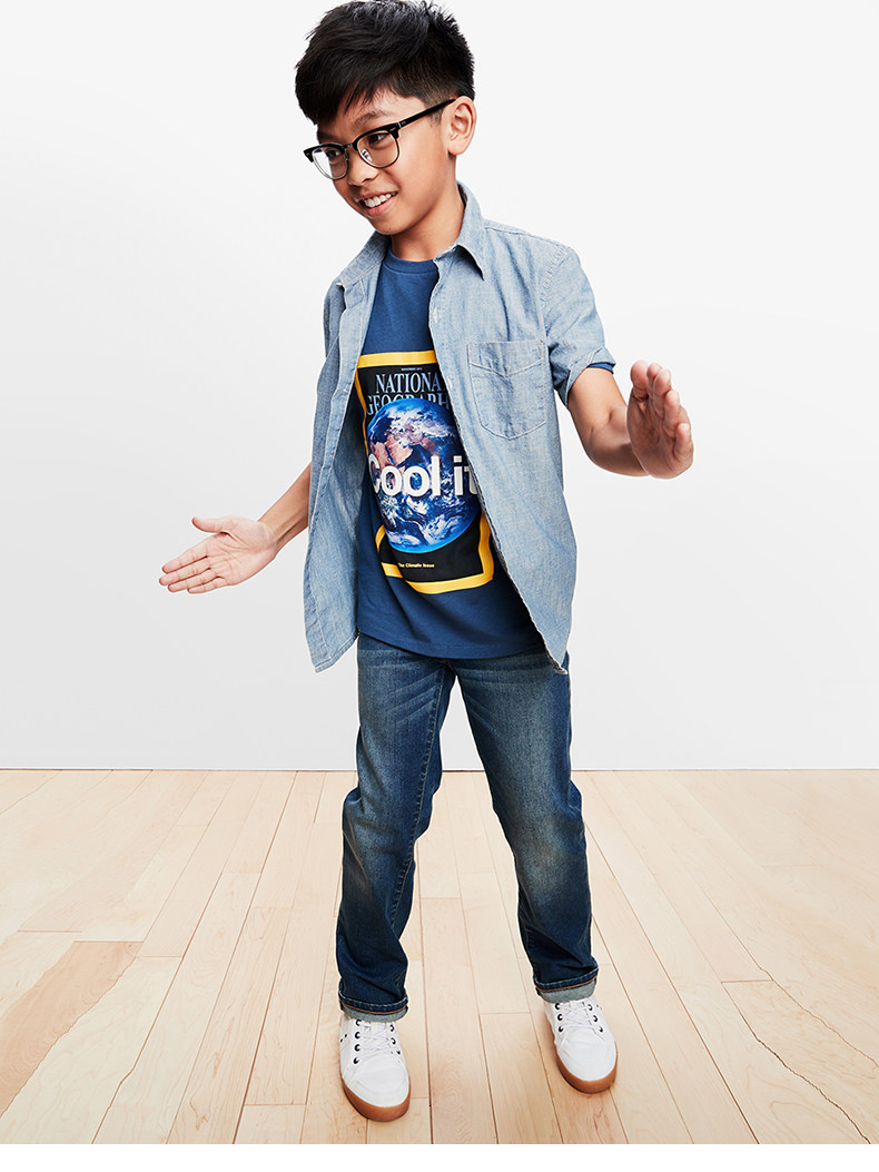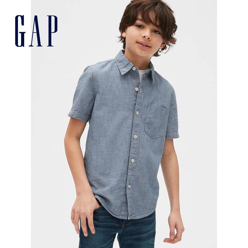 Gap Хлопковая комфортная джинсовая летняя однотонная рубашка для мальчиков, 2020
