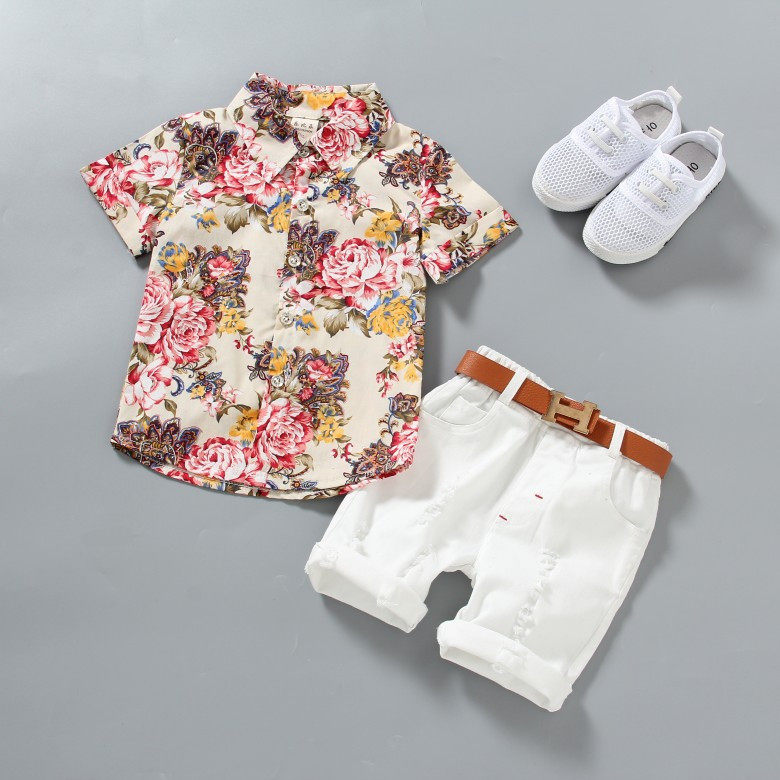 Летняя детская рубашка для мальчиков, летняя одежда, цветочный принт