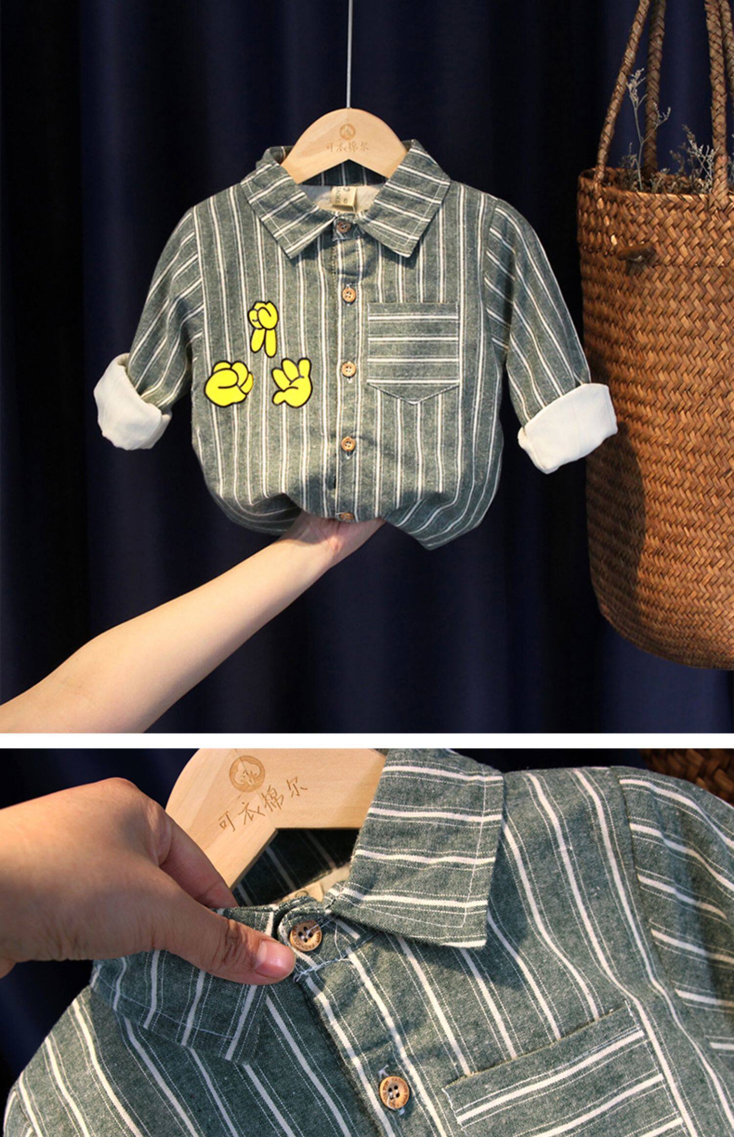 Детская хлопковая демисезонная рубашка для раннего возраста, осенняя, в западном стиле, в корейском стиле, из хлопка и льна
