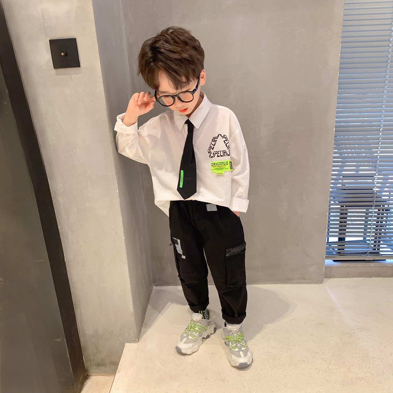 左西 Детская хлопковая базовая осенняя рубашка для мальчиков, подходит для подростков
