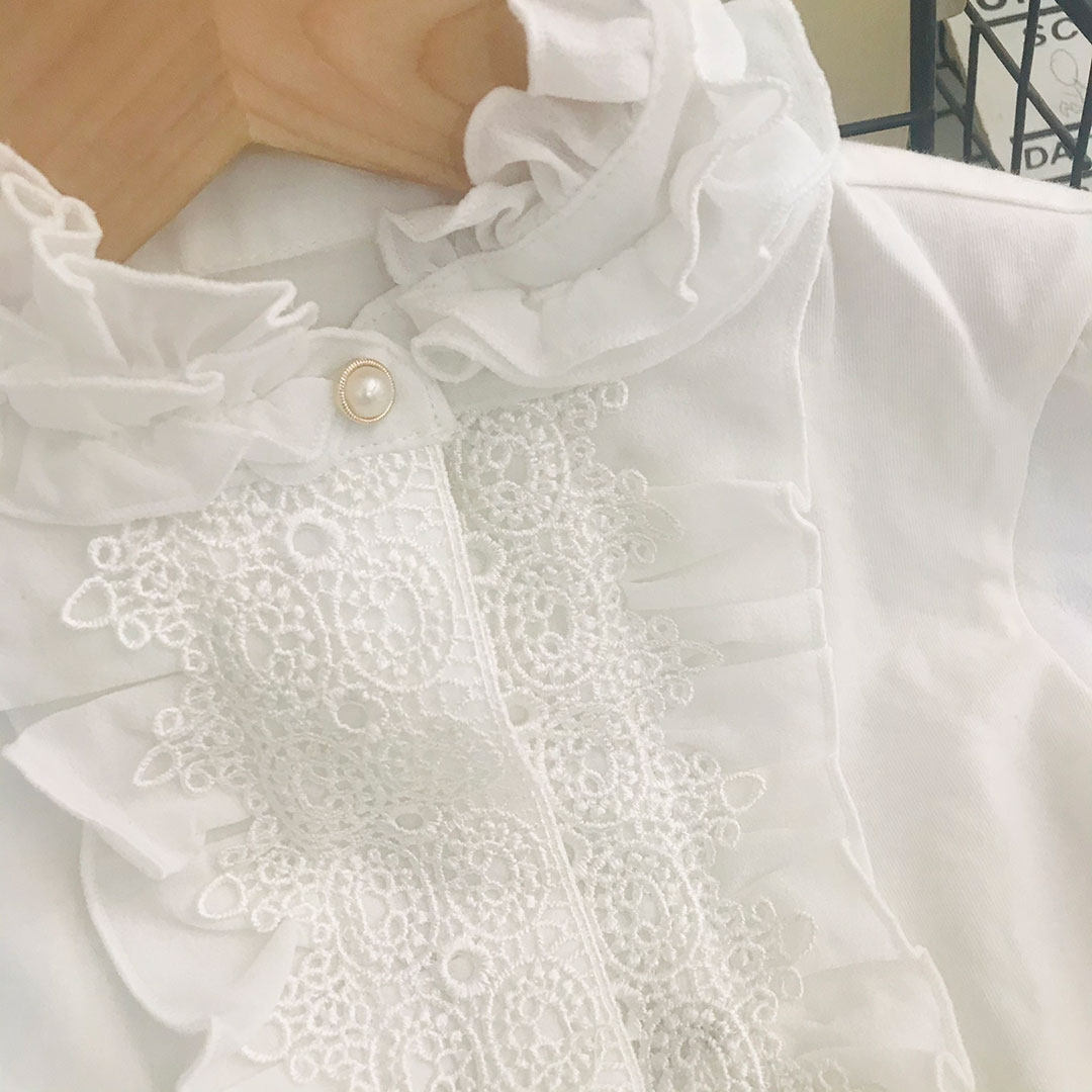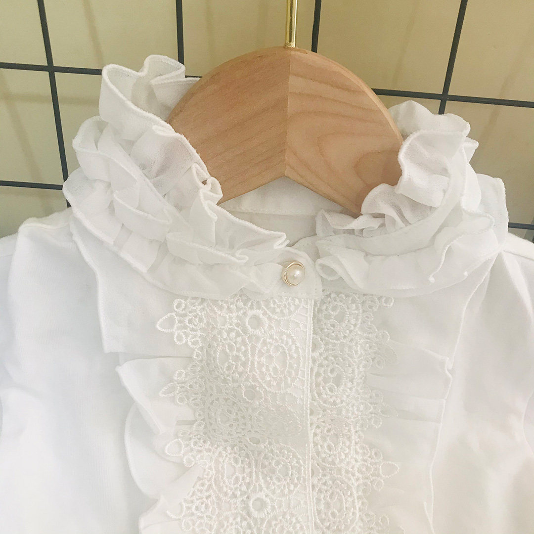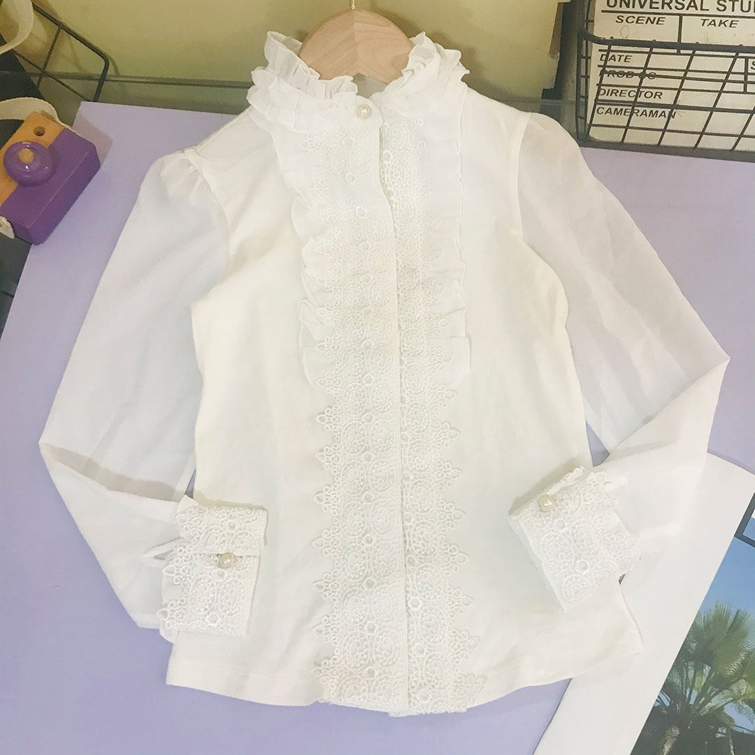 Очень деликатная белая рубашка, многослойный воротник лотоса, полупрозрачный рукав, очень красивый и сказочный