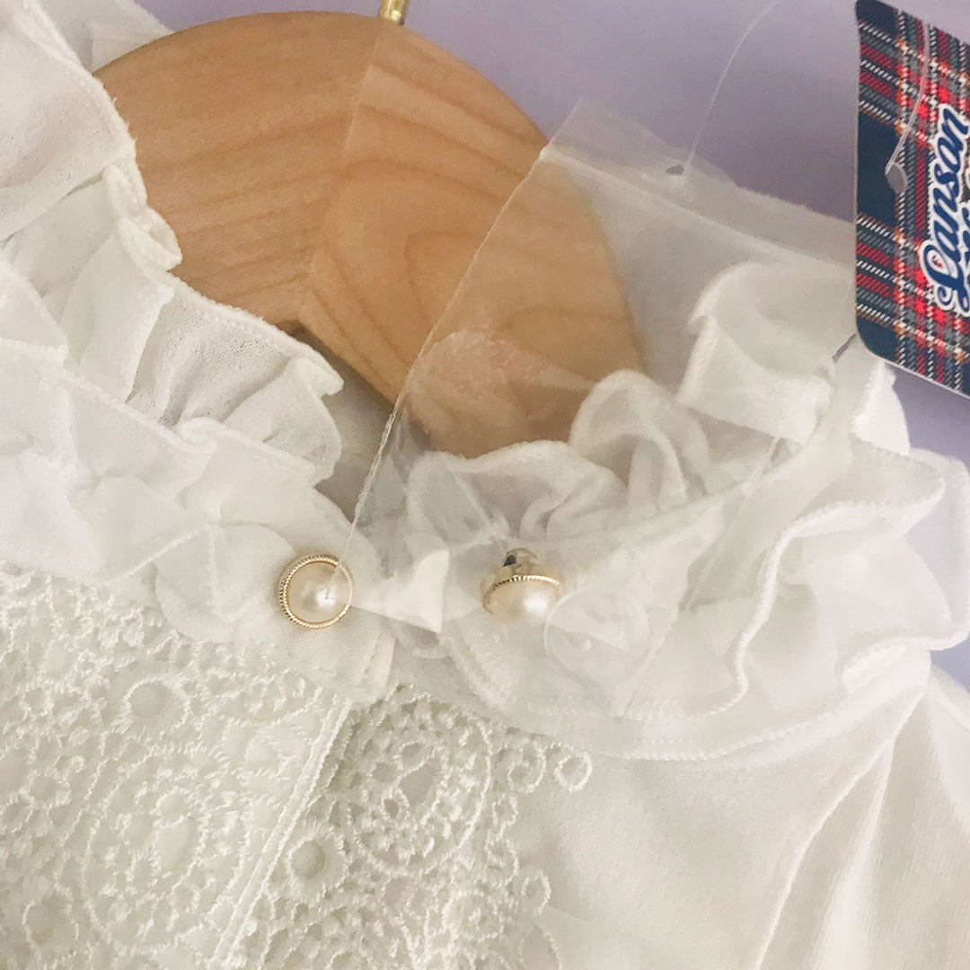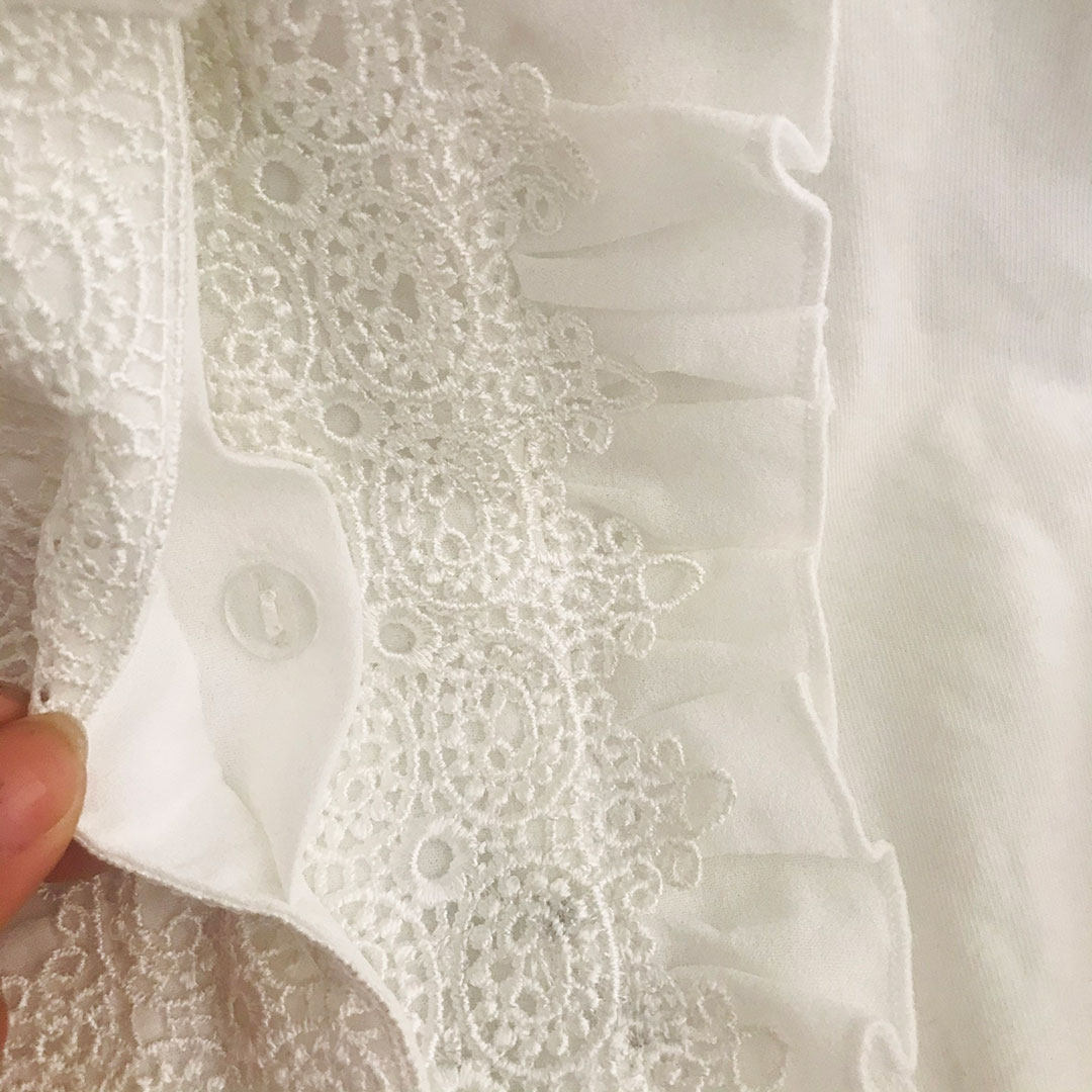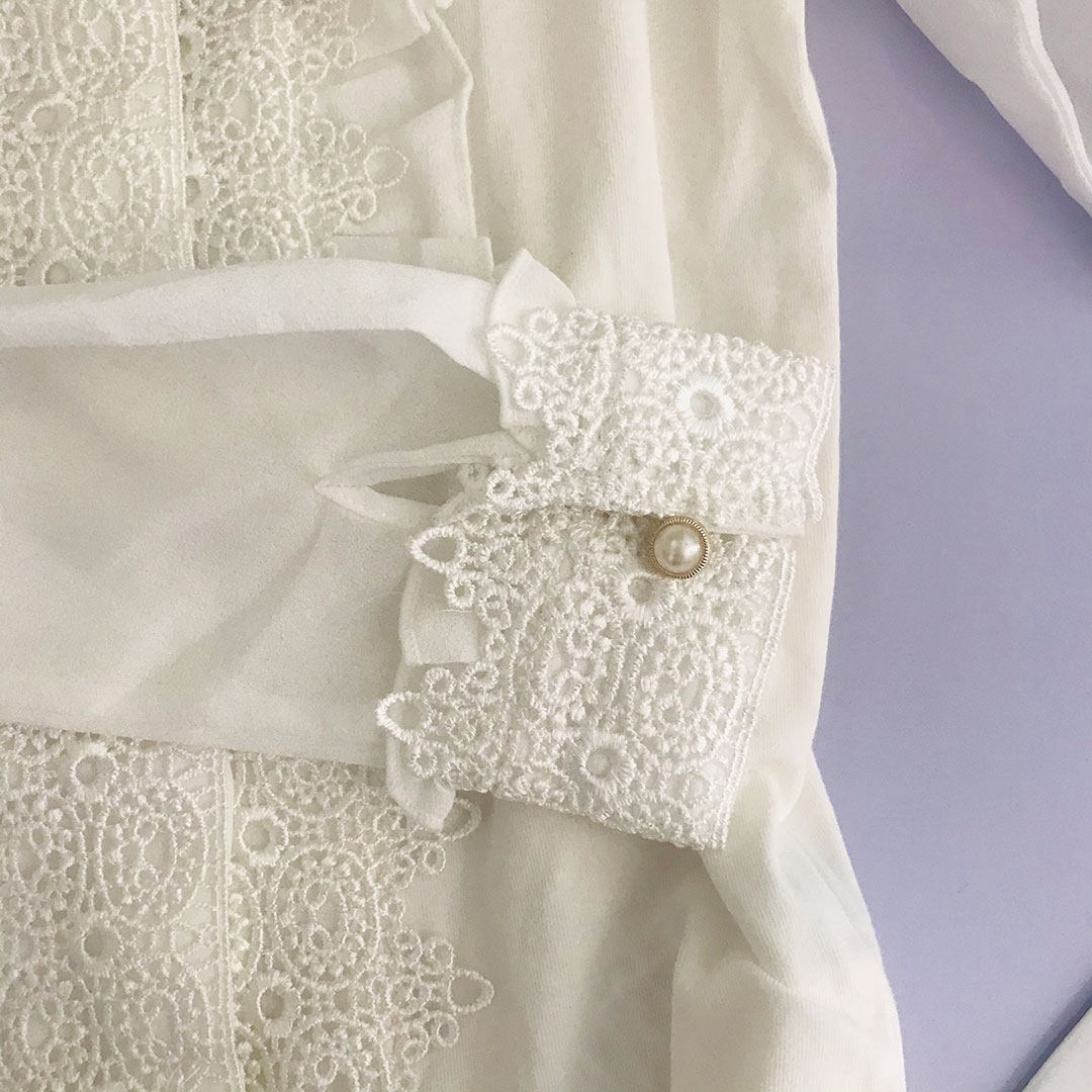 Очень деликатная белая рубашка, многослойный воротник лотоса, полупрозрачный рукав, очень красивый и сказочный