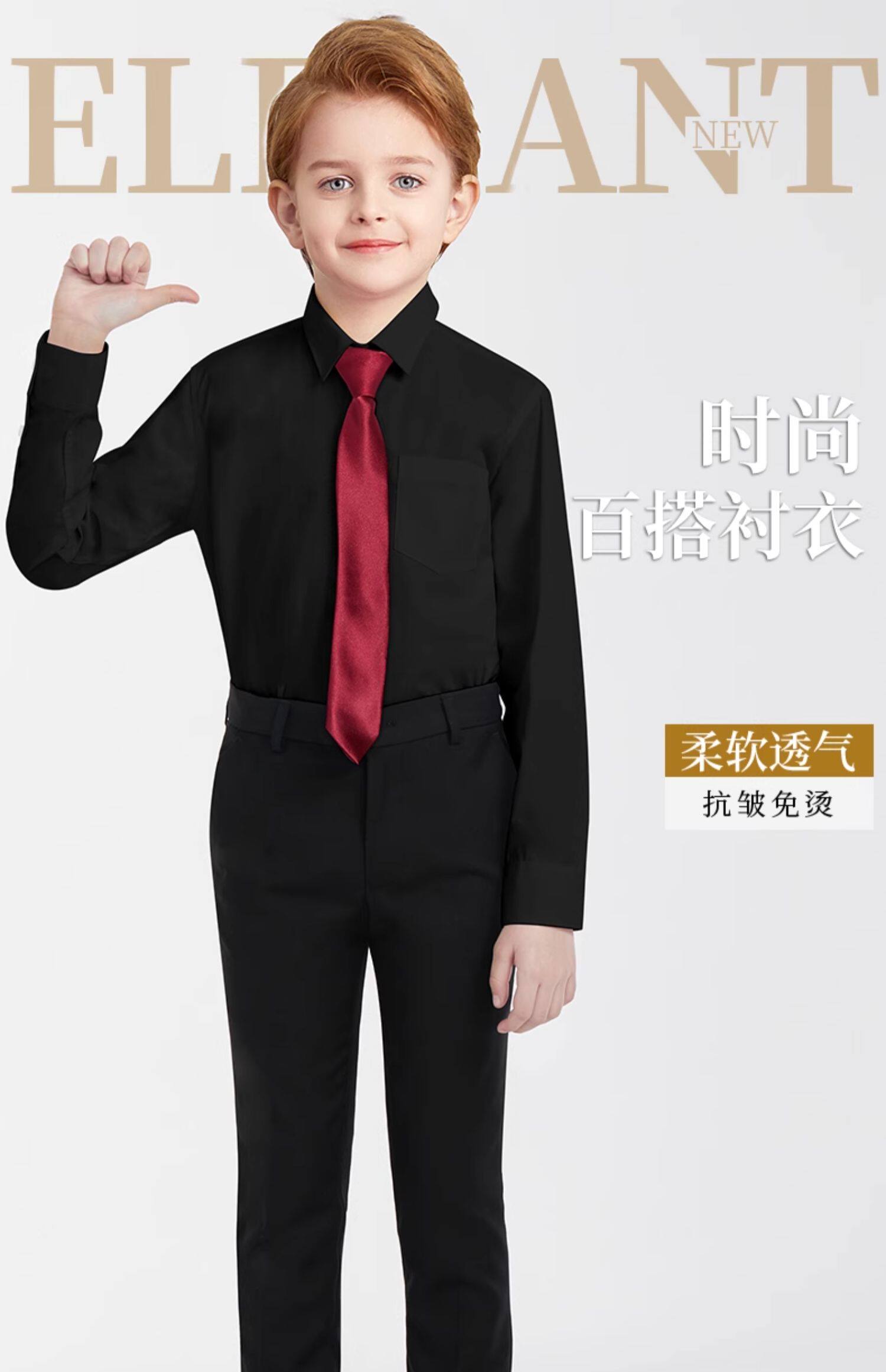 ELPA Детская черная рубашка для мальчиков, форма для школьников и студентов, пианино, наряд для музыкальных выступлений, подходит для подростков