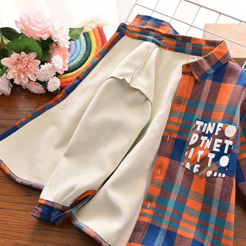 Демисезонная рубашка для мальчиков, утепленный лонгслив, детский бархатный утепленный кардиган, подходит для подростков