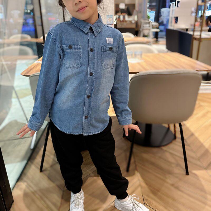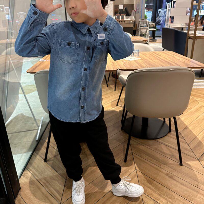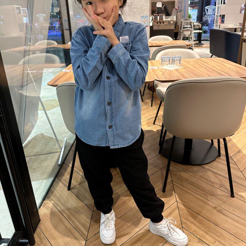 Осенняя детская базовая джинсовая рубашка подходит для мужчин и женщин для отдыха