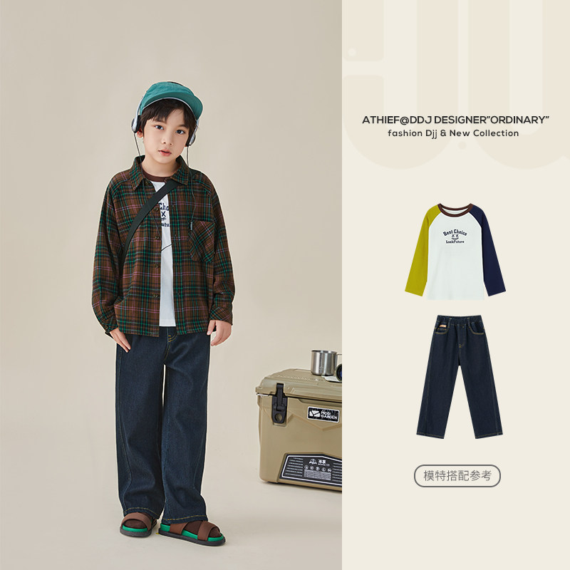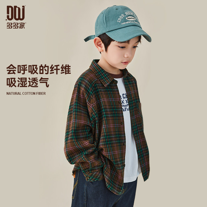 多多家 Осенняя рубашка для мальчиков, ретро хлопковый осенний лонгслив