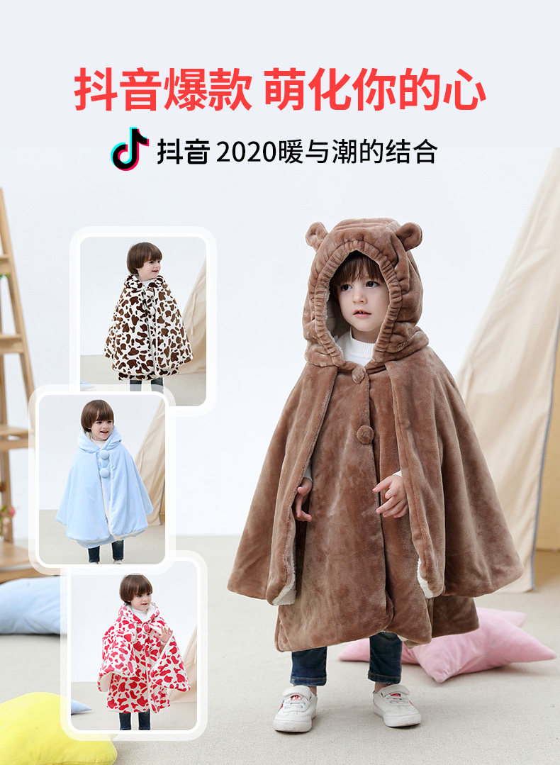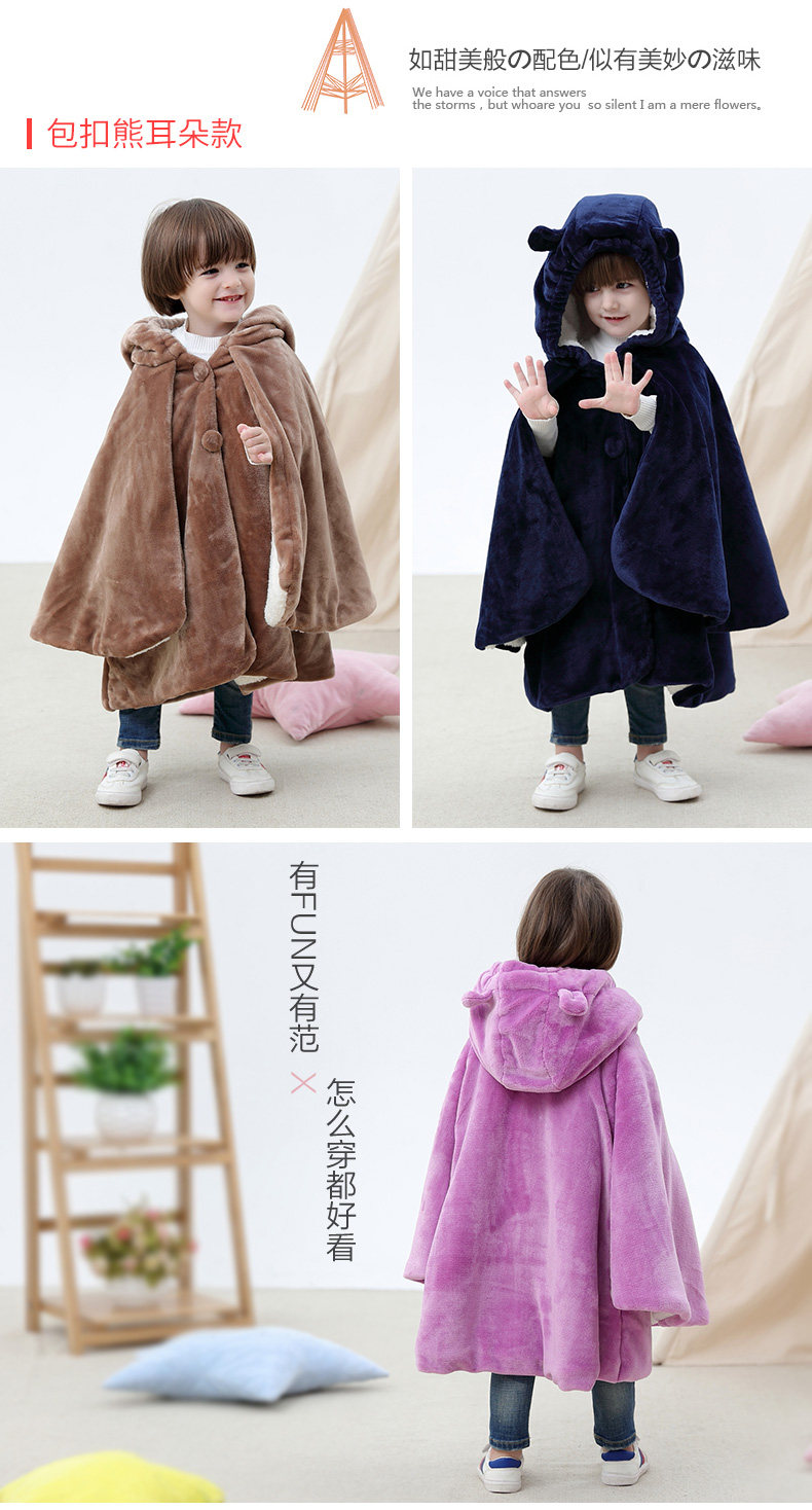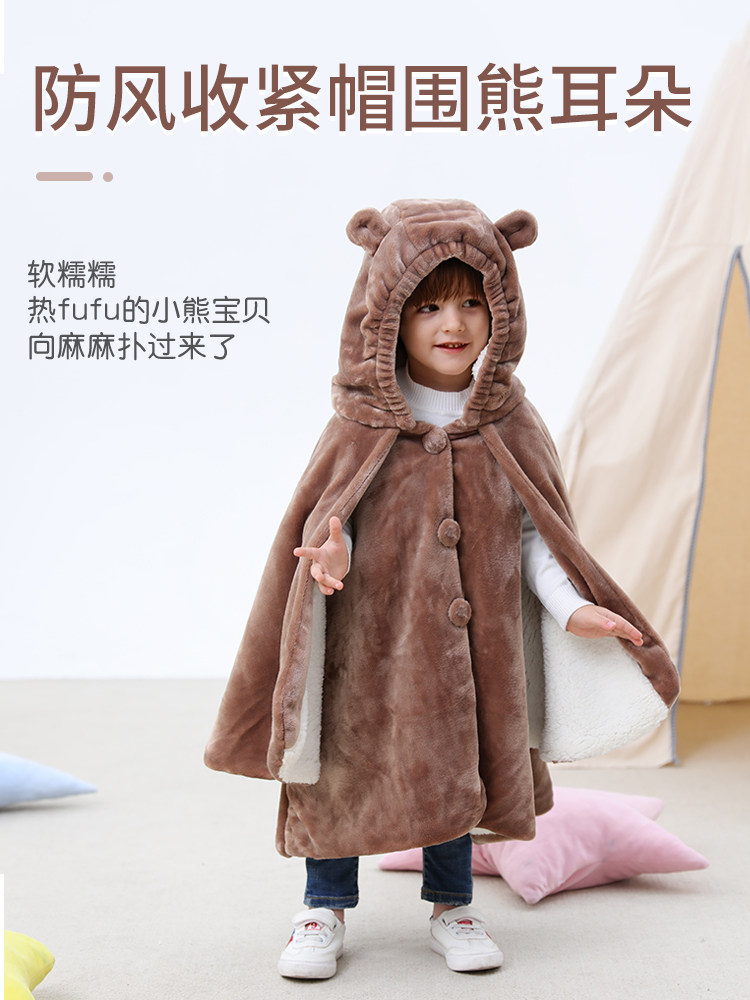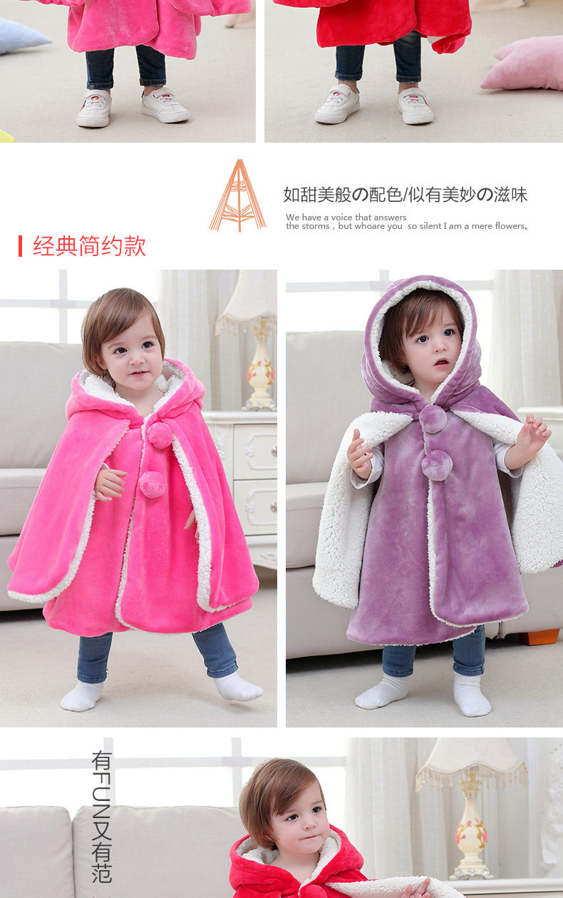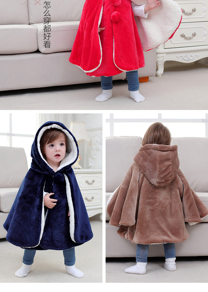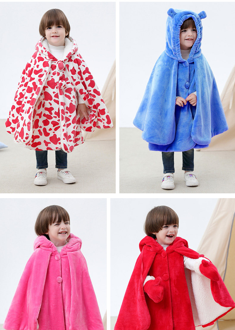 Детский коралловый бархатный демисезонный плащ, ветрозащитная накидка для выхода на улицу подходит для мужчин и женщин для девочек для принцессы, куртка, увеличенная толщина
