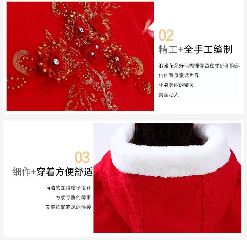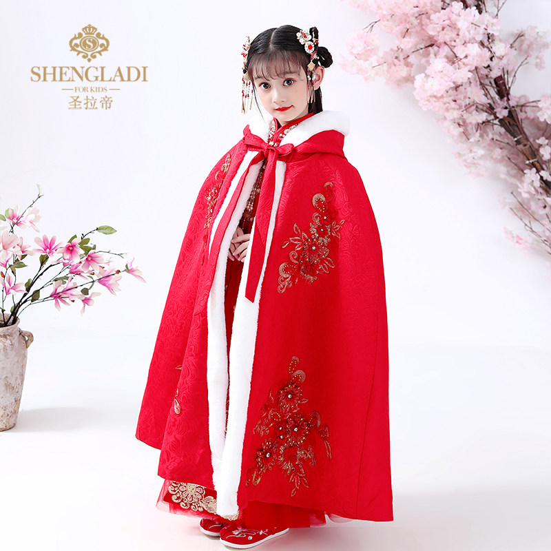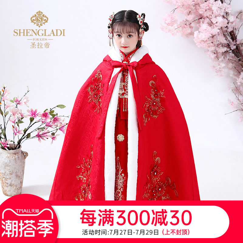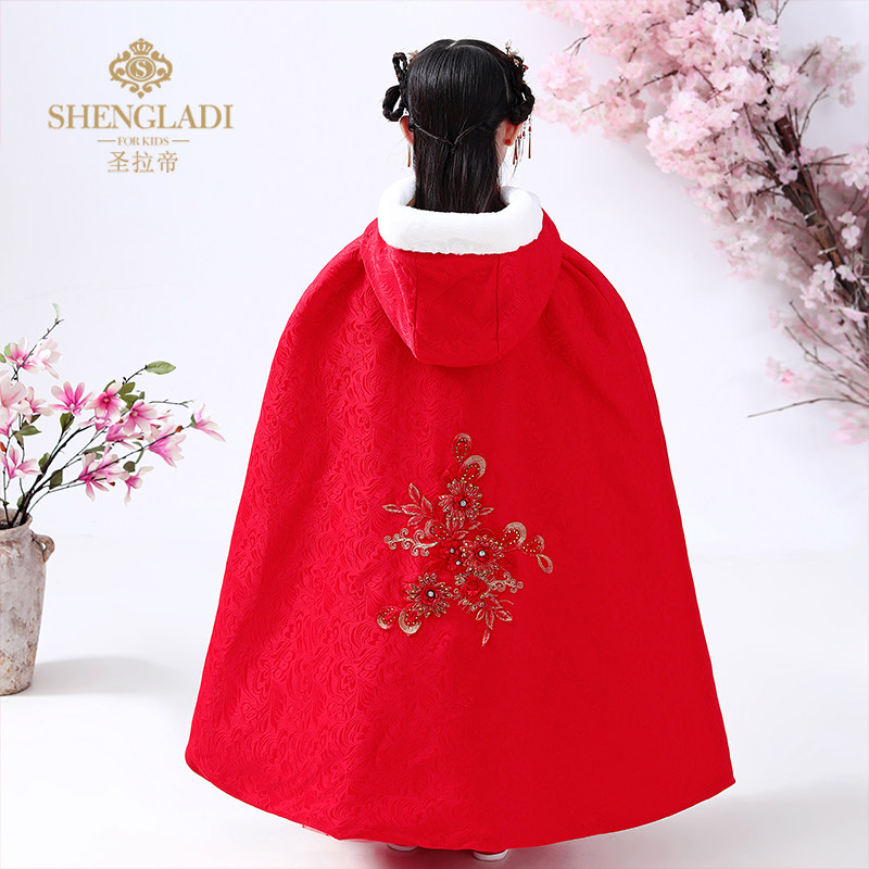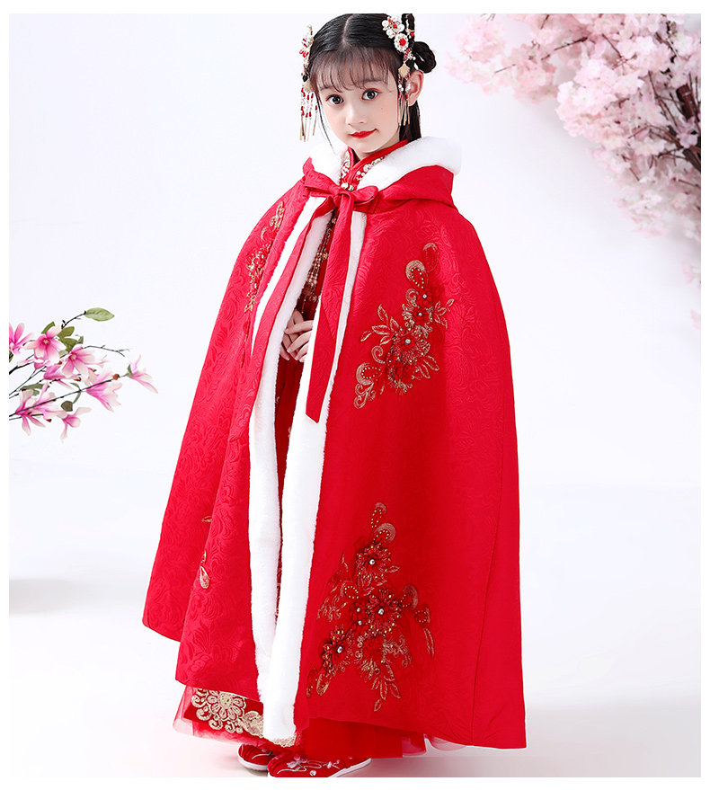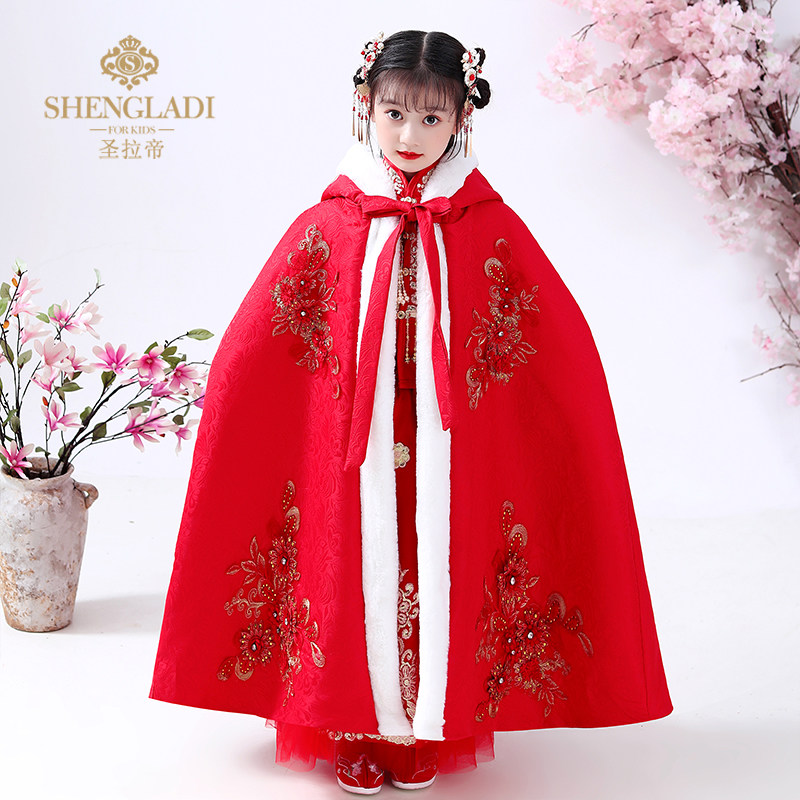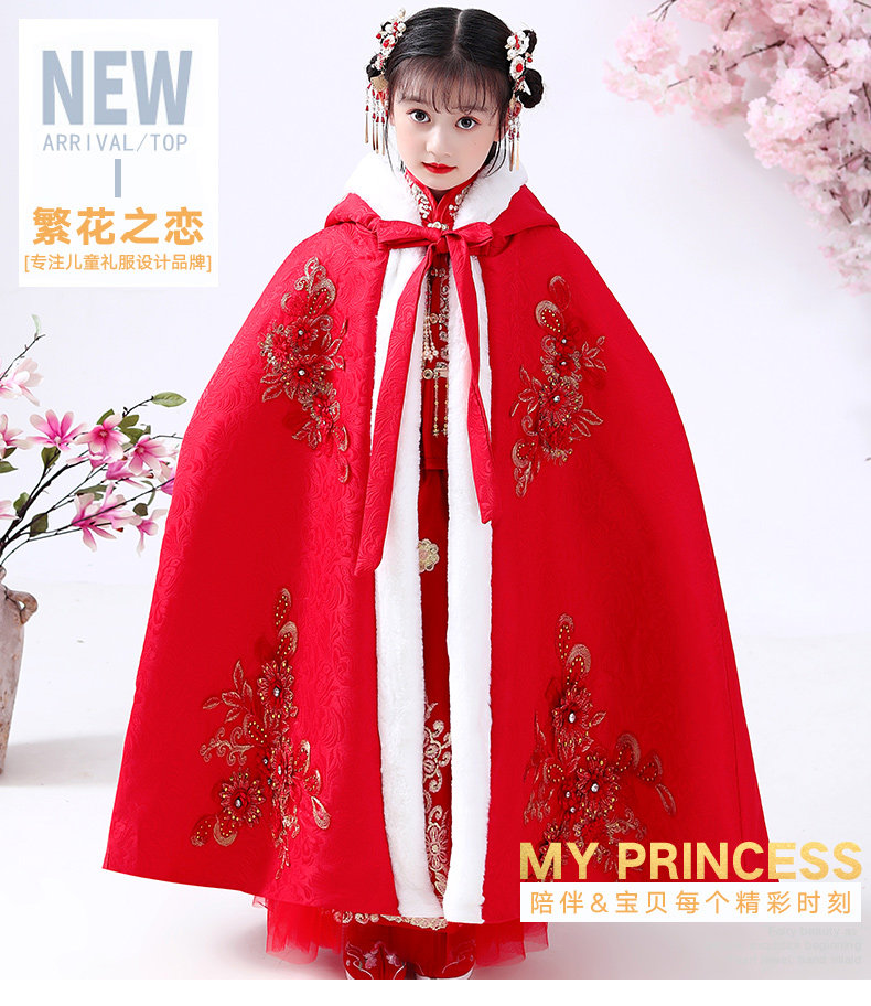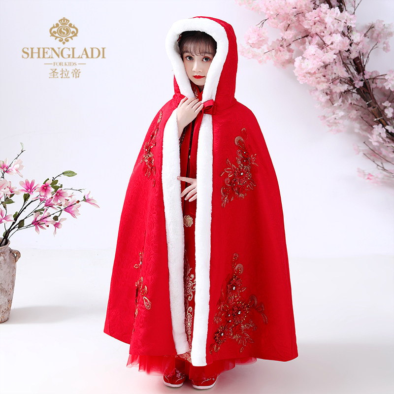 Детский зимний длинный утепленный плащ для выхода на улицу, ветрозащитное ханьфу для принцессы, накидка