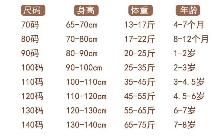 | Справочная высота: | 70 размер 3-7 месяцев 14-18 фунтов, 80см, 6-12 мес., 90см, 1-2 лет, 100см, 2-3 лет, 110см, 3-4 лет, 120см, 5-6 лет |