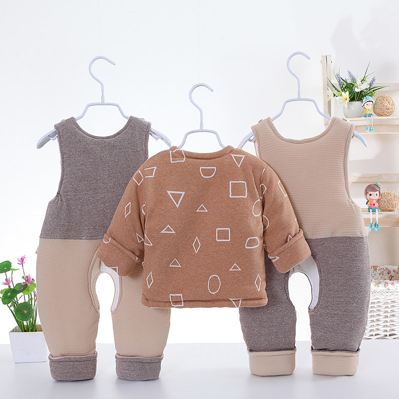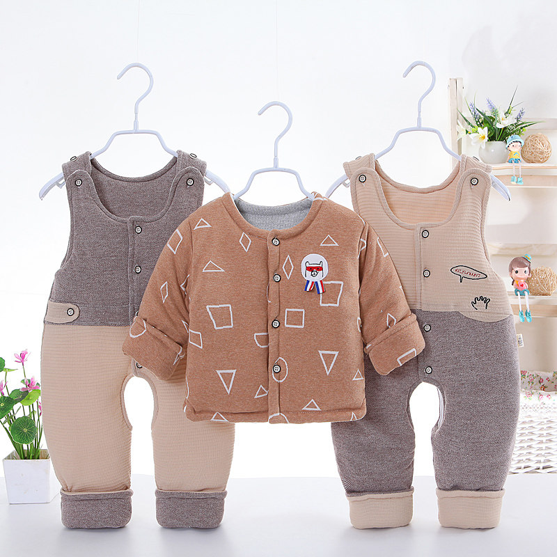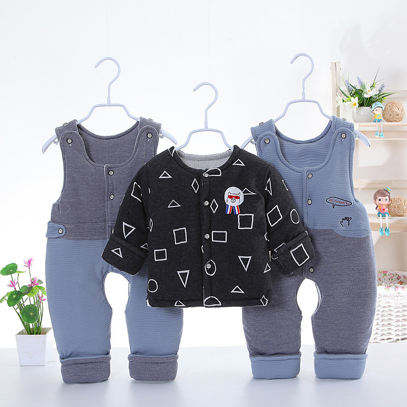 Хлопковый комплект для новорожденных для мальчиков, подтяжки, штаны, зимний пуховик, куртка, увеличенная толщина, 3 предмета, 0-2 лет