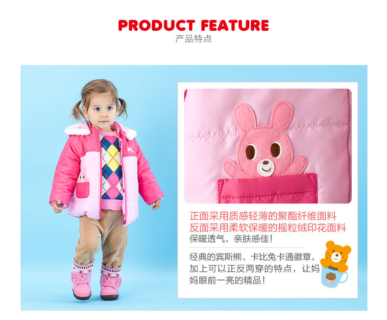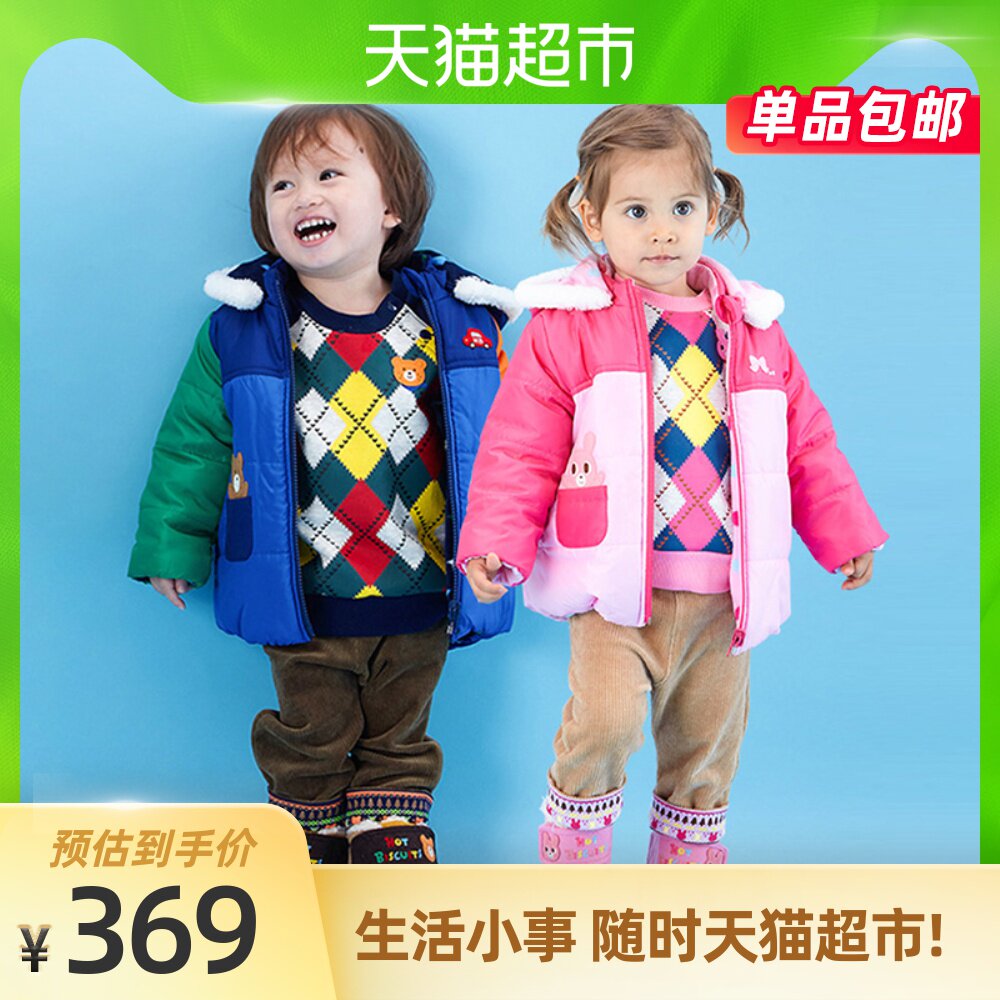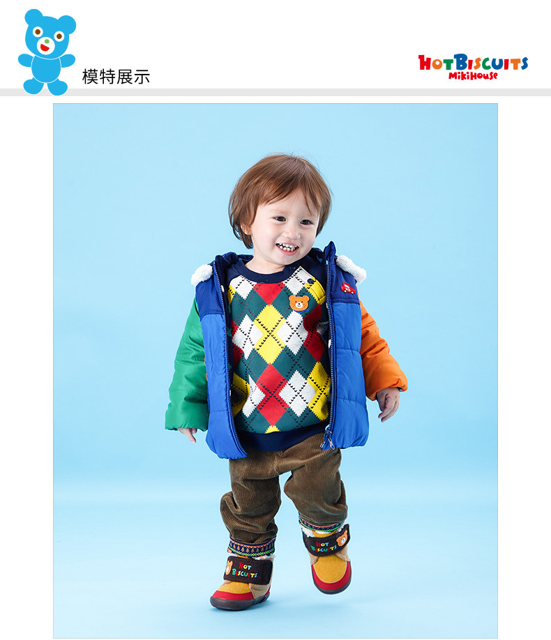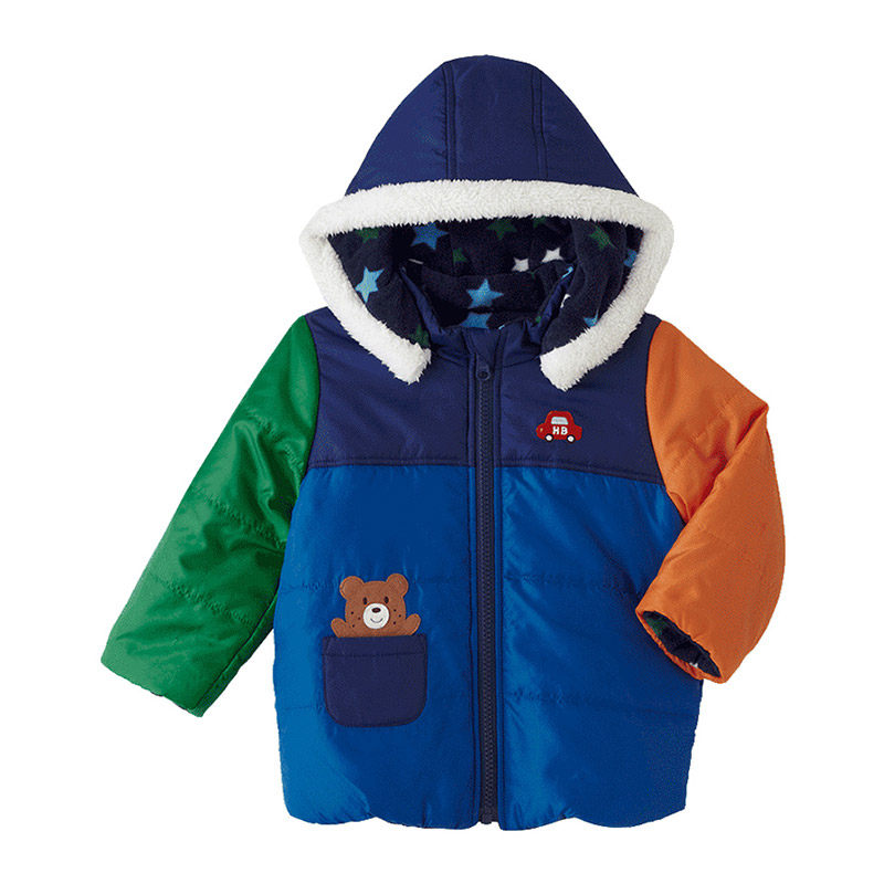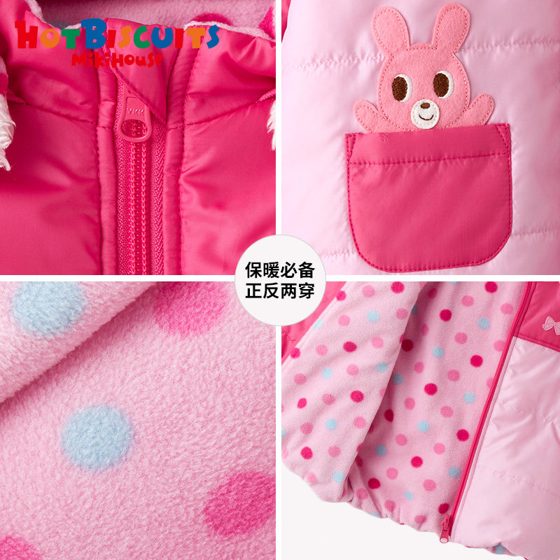 Mikihouse Детские теплые хлопковые куртки встряхнуть флисовая вышивка зима Два куртка с капюшоном горячее печенье