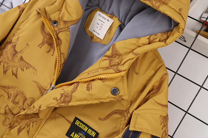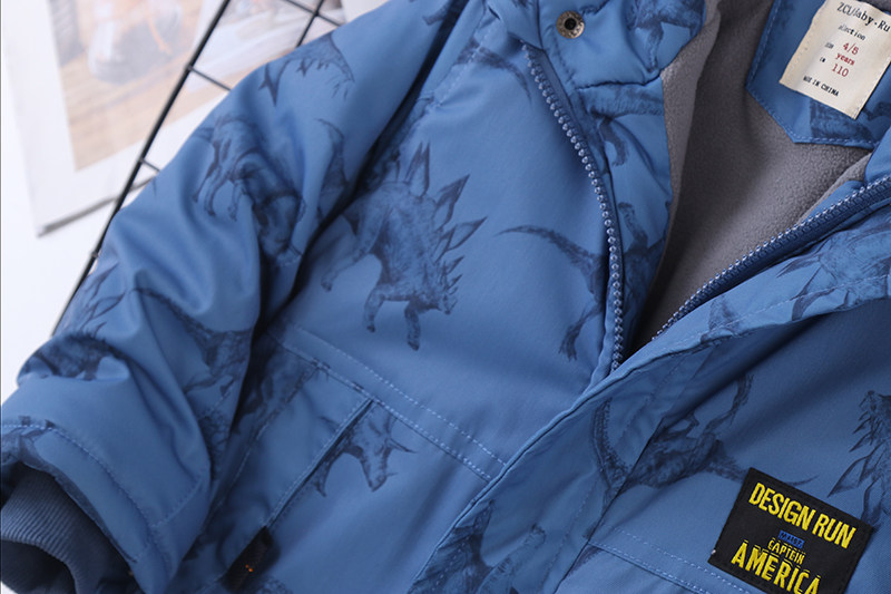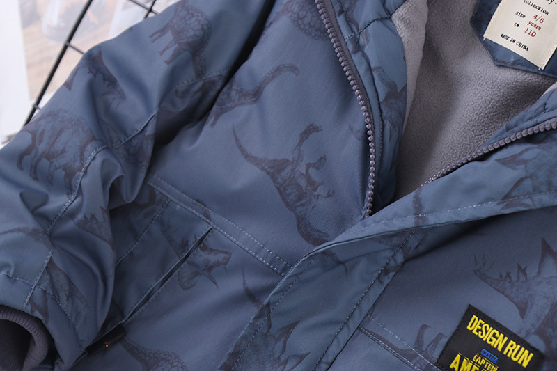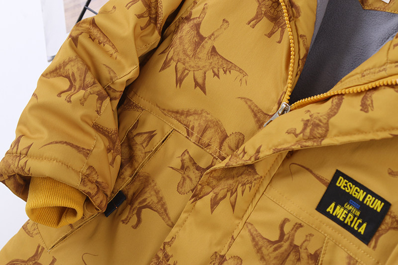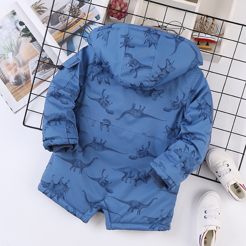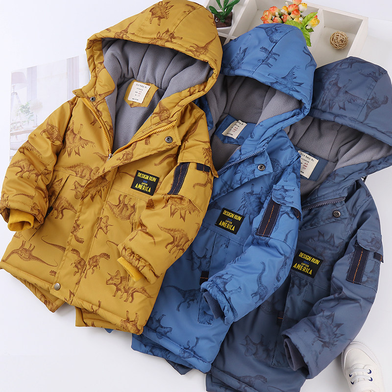 Утепленный динозавр, зимняя модная шапка с капюшоном для мальчиков, детский пуховик, куртка