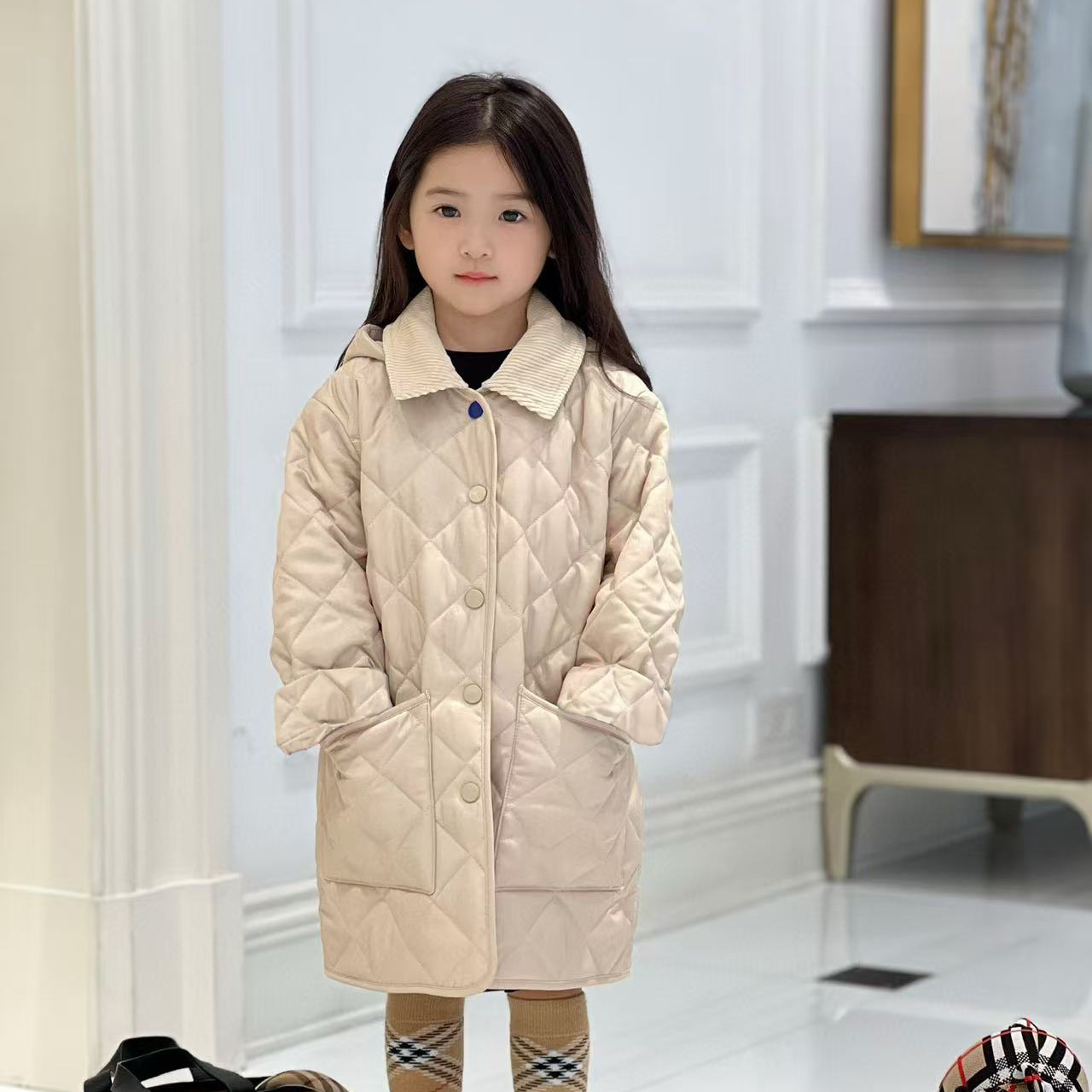 Детский длинный демисезонный пуховик, плащ подходит для мужчин и женщин, куртка, средней длины, детская одежда, семейный стиль