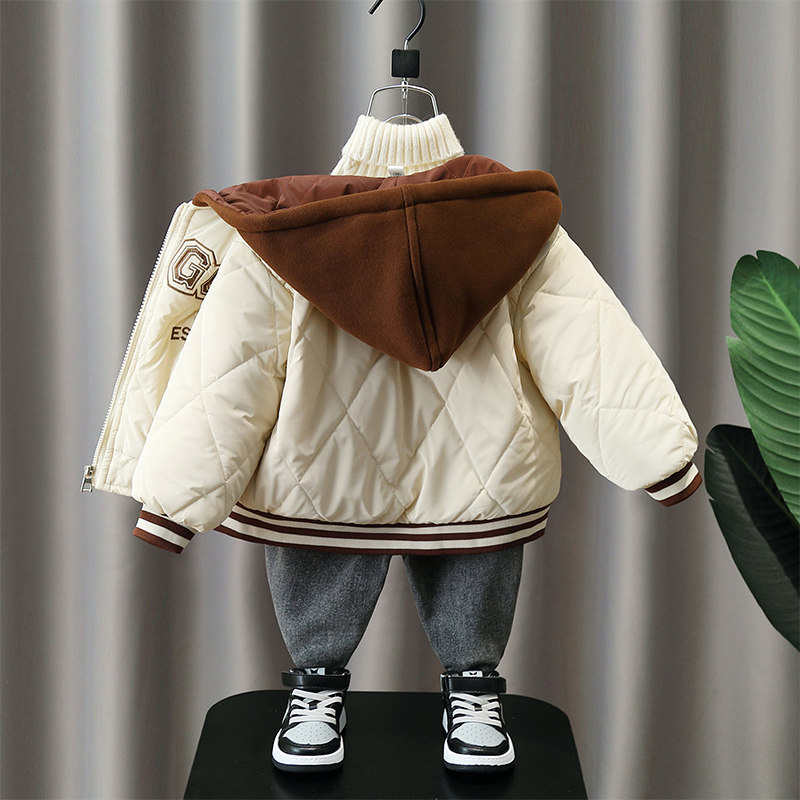 Детский демисезонный стеганый флисовый пуховик, удерживающая тепло детская куртка для мальчиков, увеличенная толщина, в западном стиле