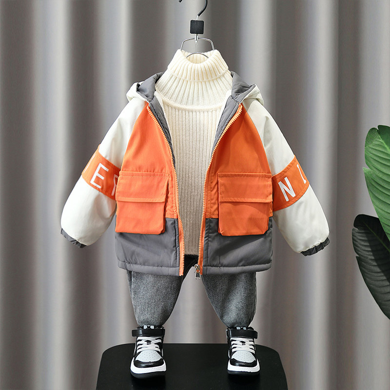 Утепленная демисезонная зимняя куртка для мальчиков с капюшоном
