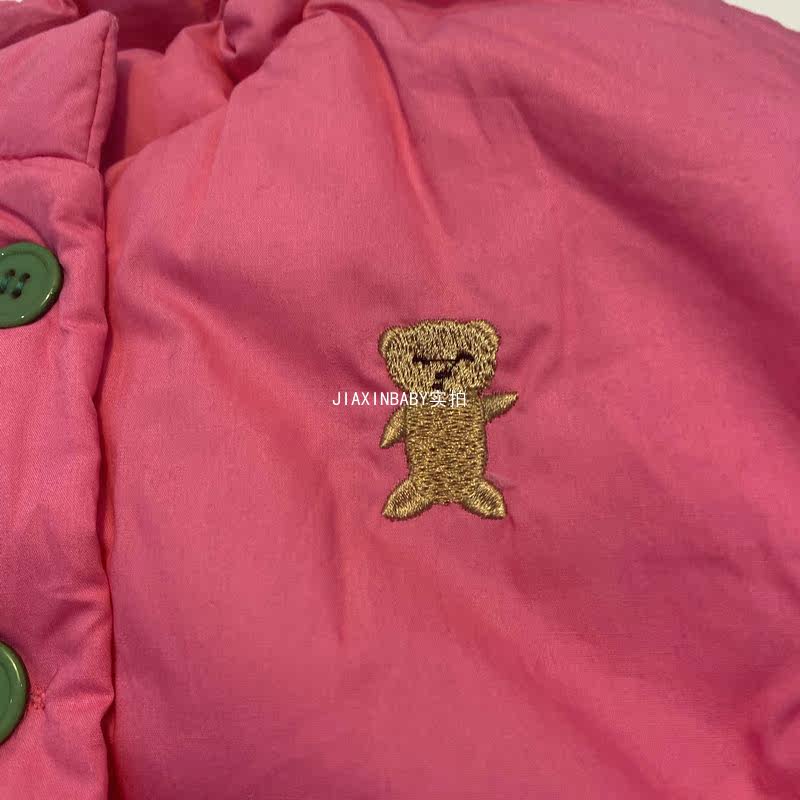 Детский милый пуховик, красная куртка, с медвежатами, с вышивкой, 1-5 лет, увеличенная толщина