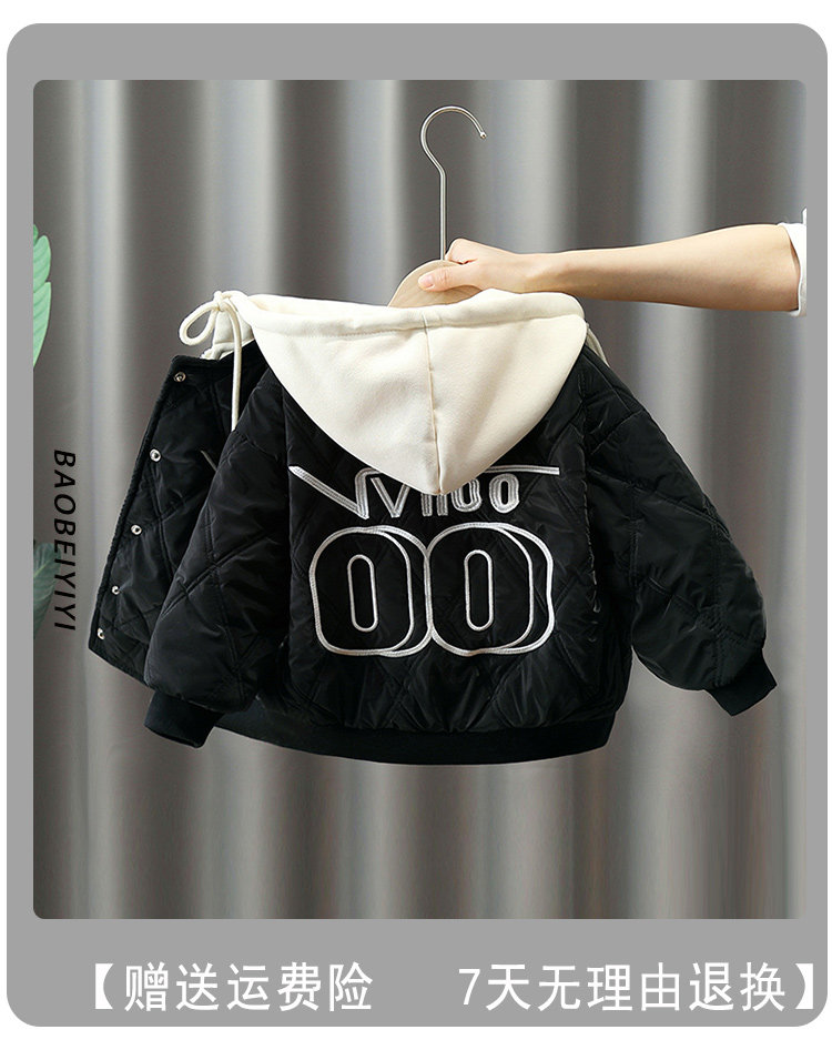 Пуховик для мальчиков, зимняя детская бейсбольная толстовка с капюшоном, форма, утепленная куртка, в западном стиле, увеличенная толщина