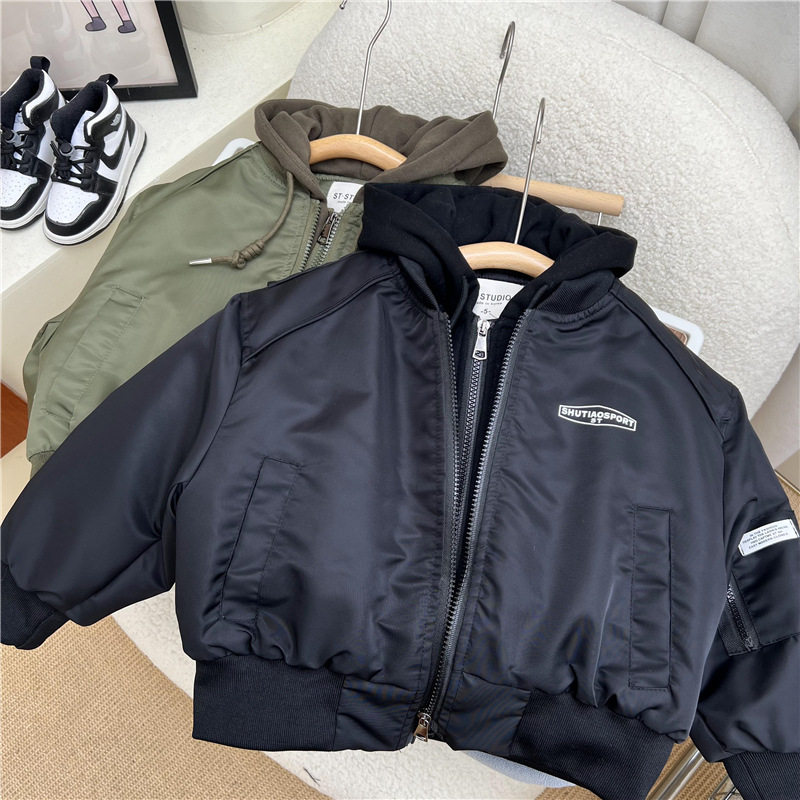 Детский пуховик, комплект с капюшоном для мальчиков, стеганая куртка, бейсбольные ватные палочки, увеличенная толщина