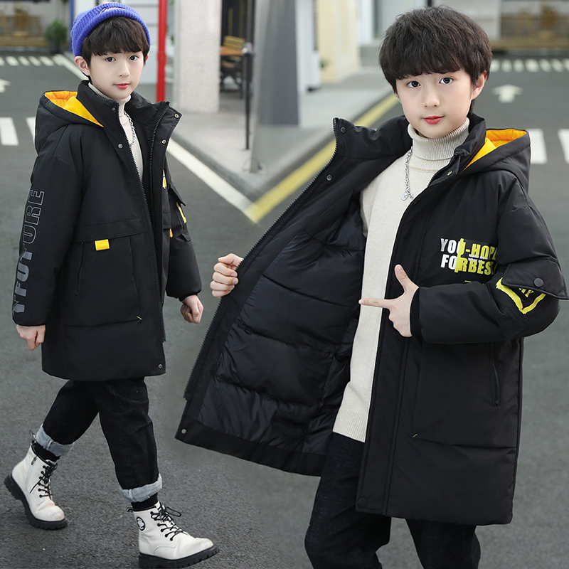 Пуховик для мальчиков, длинная демисезонная куртка с пухом, коллекция 2023, в западном стиле, подходит для подростков, средней длины