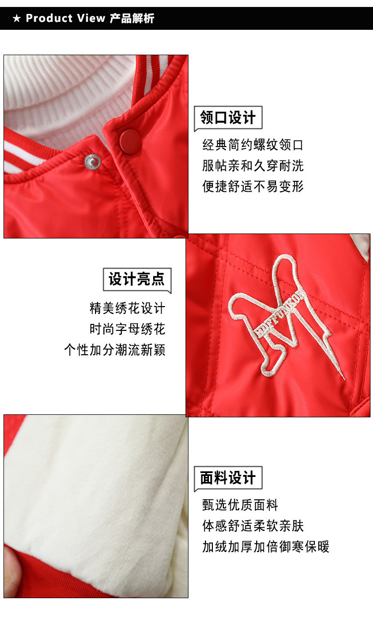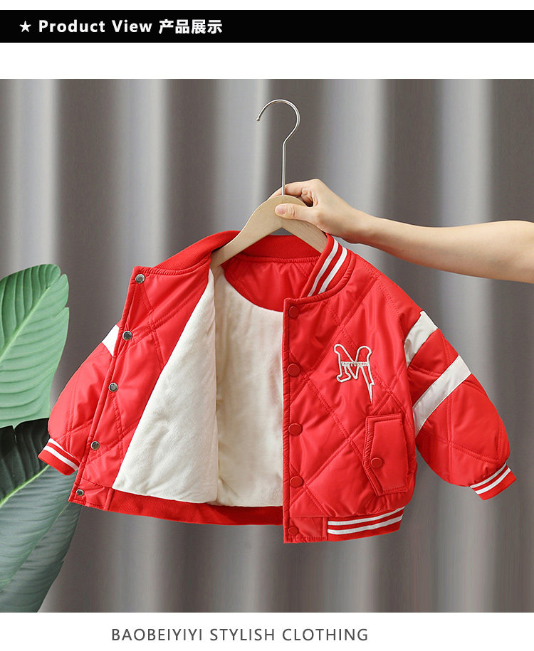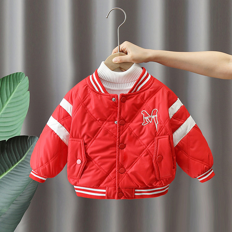 Флисовая бейсбольная зимняя форма для мальчиков, красная стеганая детская удерживающая тепло куртка