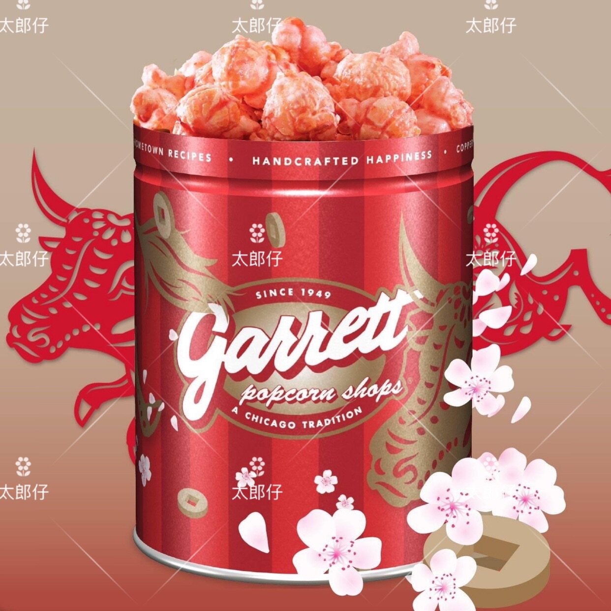 Гонконг NIU Новый год, Новый год Niu Guancos, карамель, карамель, миндальное последовательное попкорн