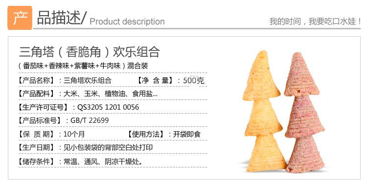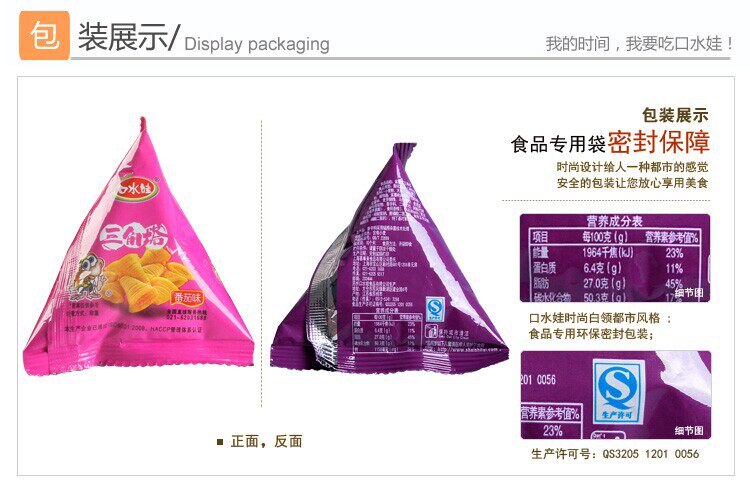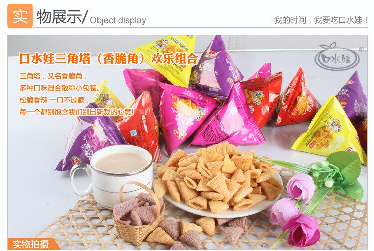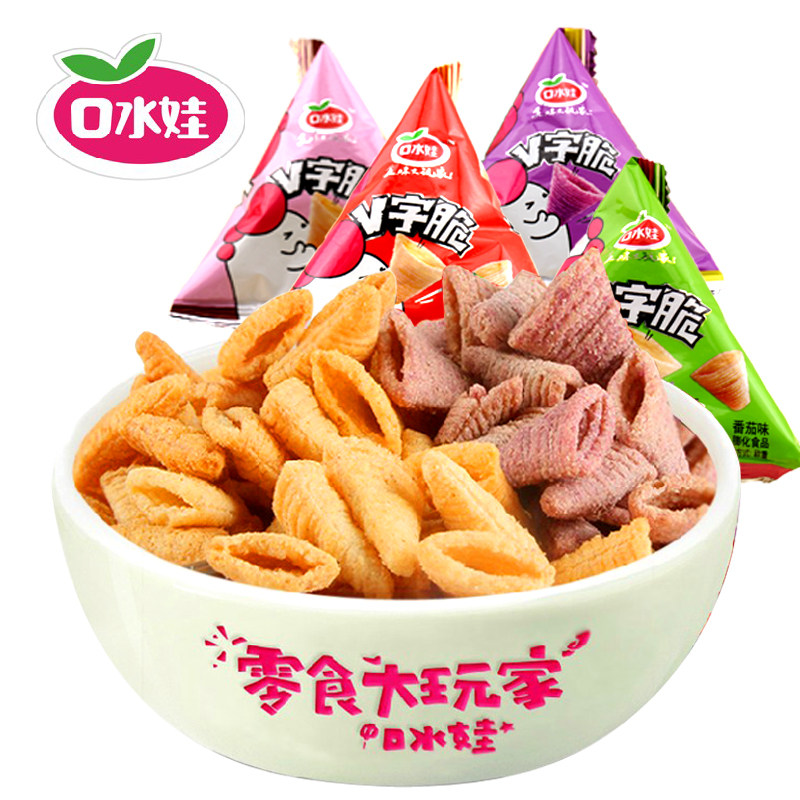 口水娃 Хрустящий угловой треугольник v -обработанный хрустящий 500 г пыхтя капусты, повседневные закуски, подарочные пачки, хрустящие закуски
