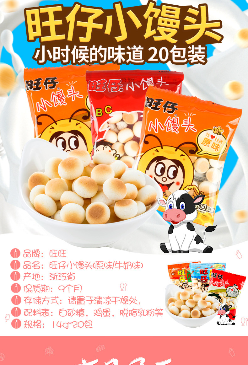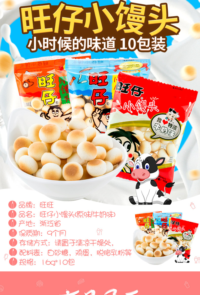 旺旺 Wangzi Little Buns 10G/14G/192G Оригинальная молоко, ароматая молоко целую коробку детского печенья со старыми закусками.