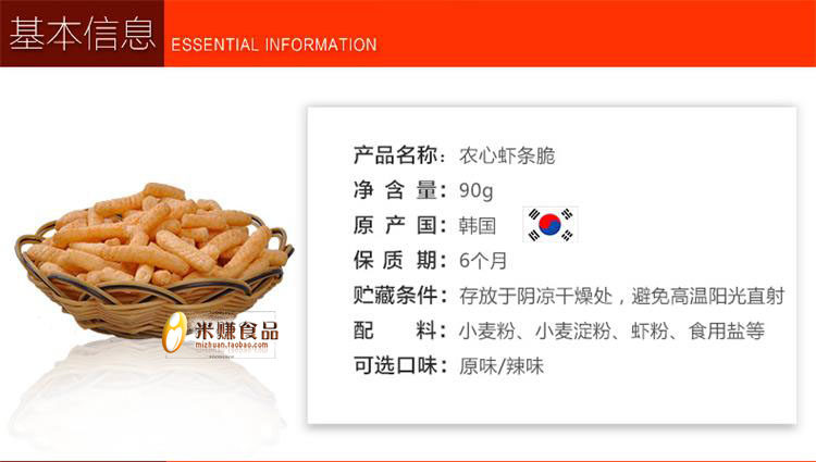 | Вкус: | Оригинальная полоса креветок, Острые креветки, Рисовые креветки палки |