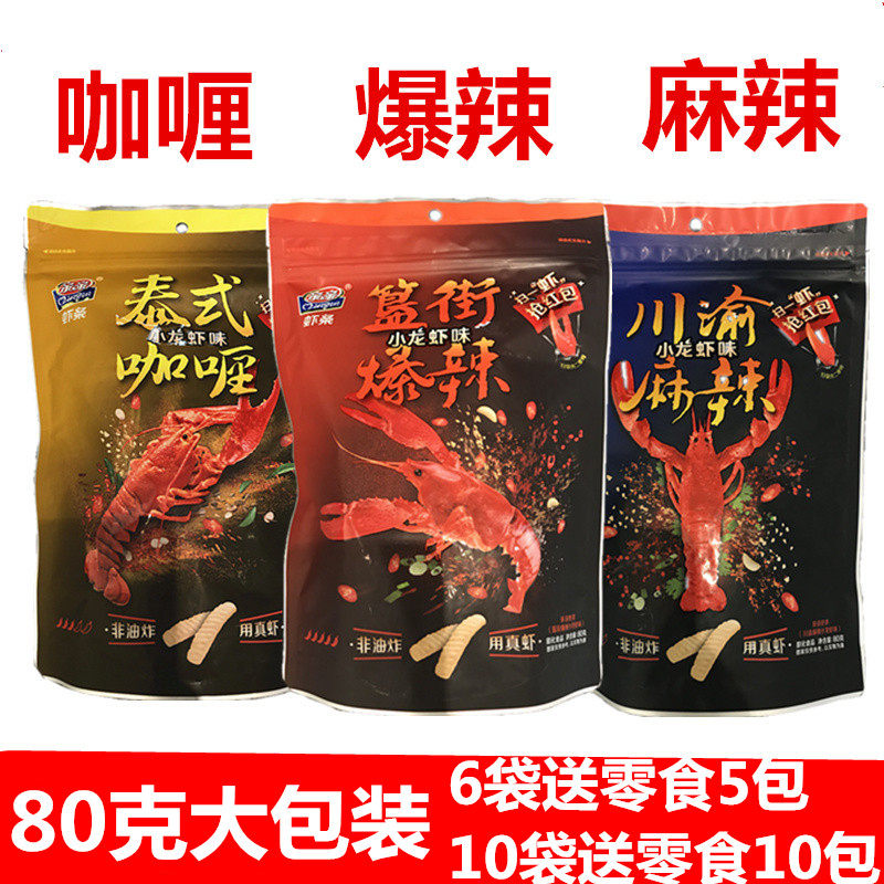 Поцелуй креветки полоска рака 80 граммов большой упаковки горячей прямой пряной острый карри -стрит, не -лифридные ароматные закуски, закуски