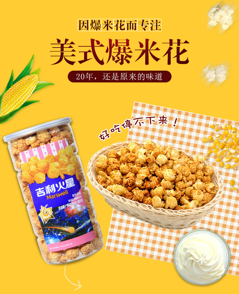 吉利火星 Ballo -Capers Corn Flower American Caramel Caramely Creamy Sesame Flavor Popcorn 160 г сетка красные закуски