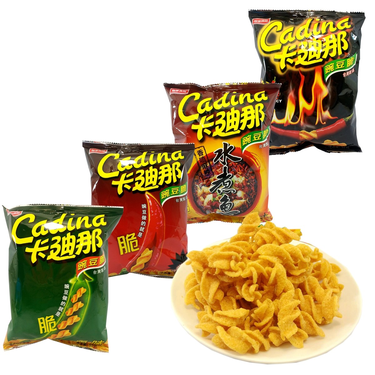 Кардиновый горох хрустящая еда 52g*4 мешки в Тайване импортировали ностальгические закуски, такие как Кадина Фрип Фри